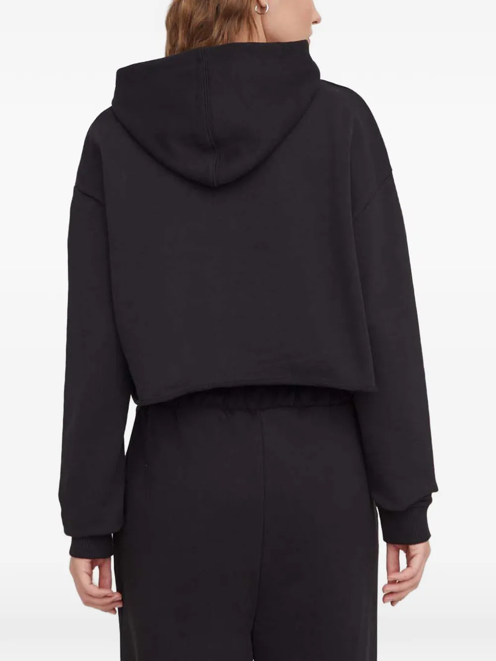 Черная толстовка с капюшоном, логотипом, длинными рукавами, ребристыми манжетами и подолом