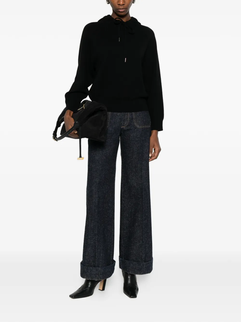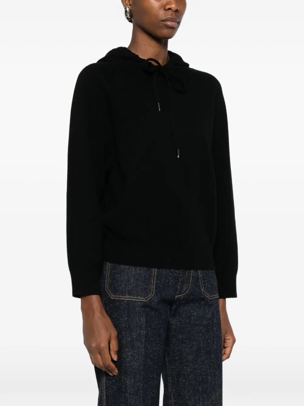 Черная вязаная толстовка с капюшоном на кулиске и длинными рукавами