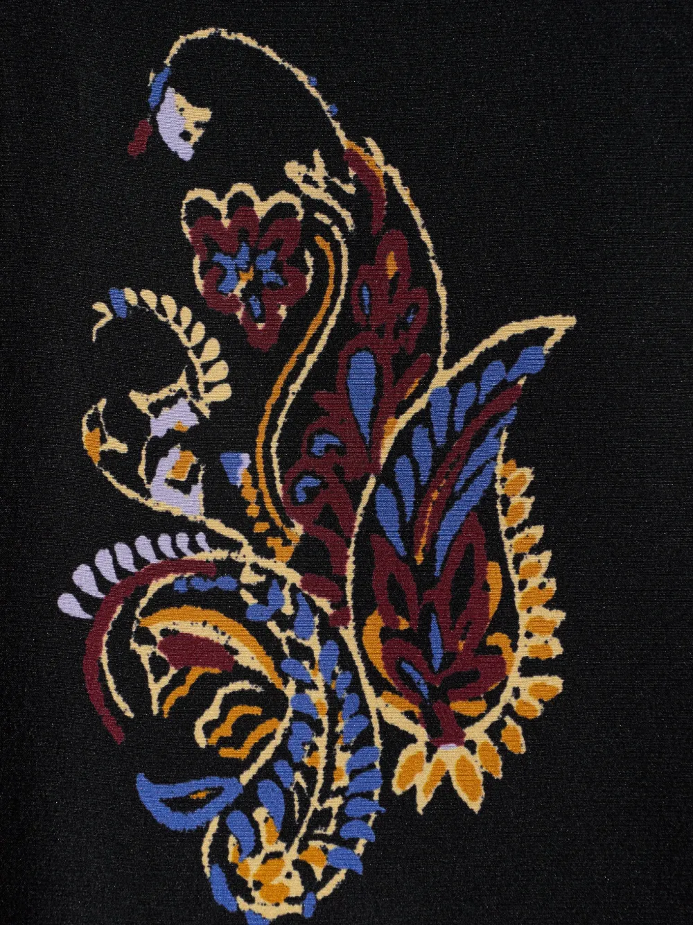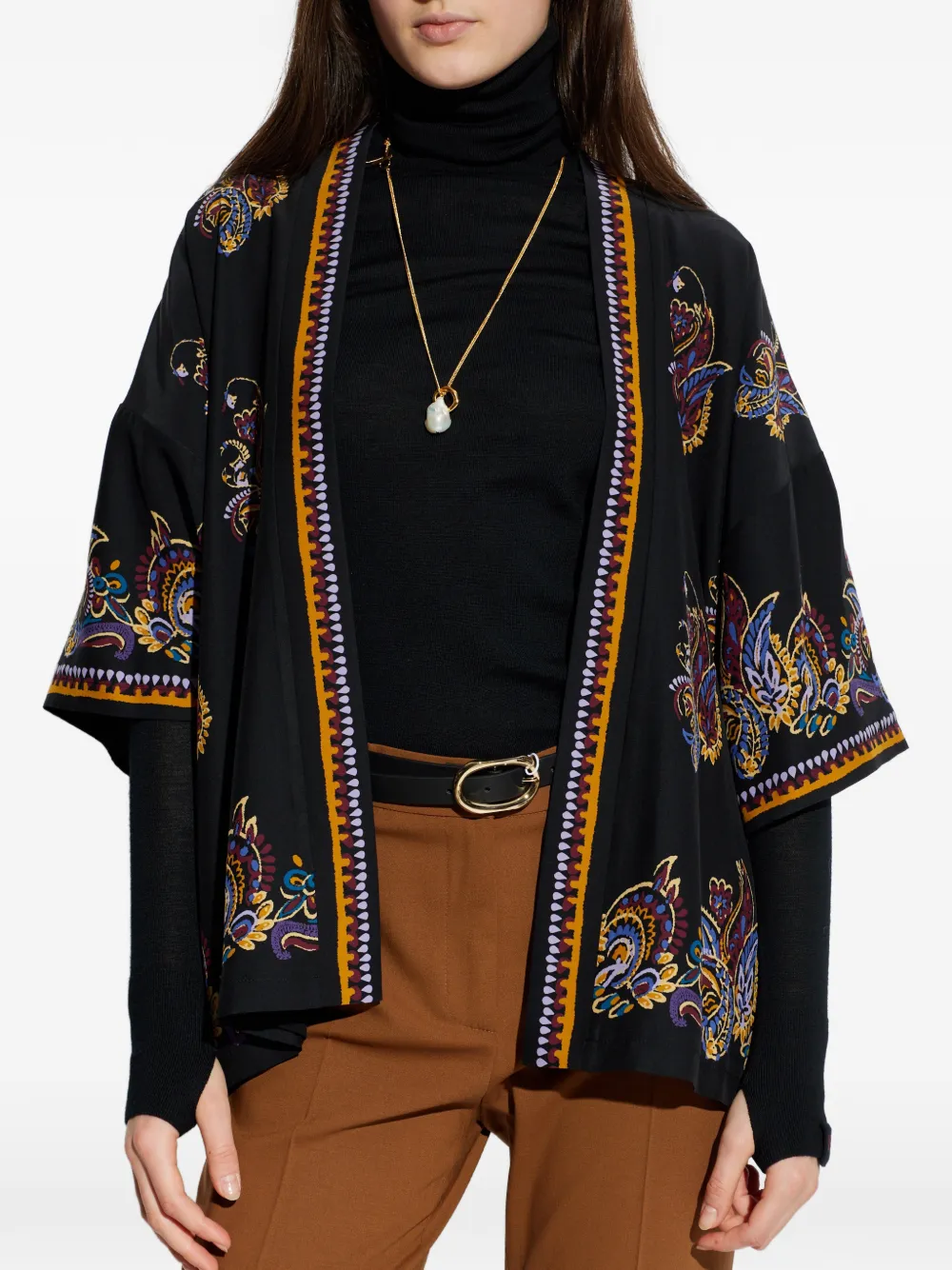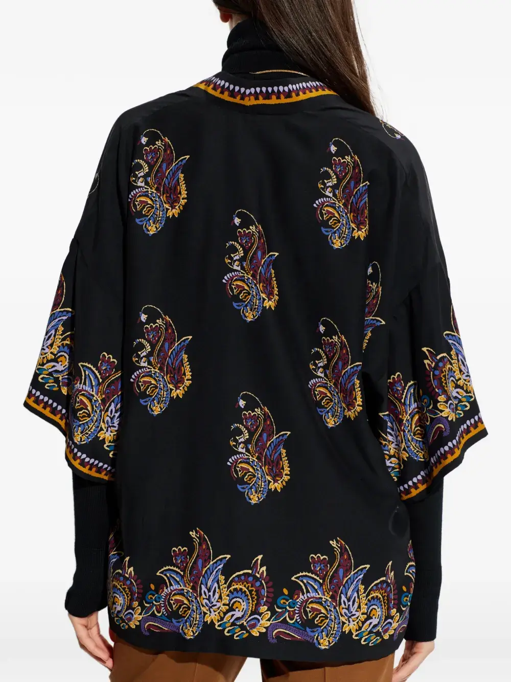 Чёрная накидка с принтом "пейсли", короткими рукавами и отделкой по краю