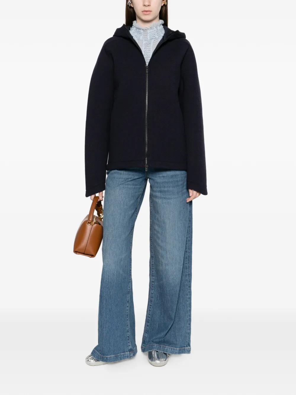 Синий худи на молнии с длинными рукавами и панельным дизайном