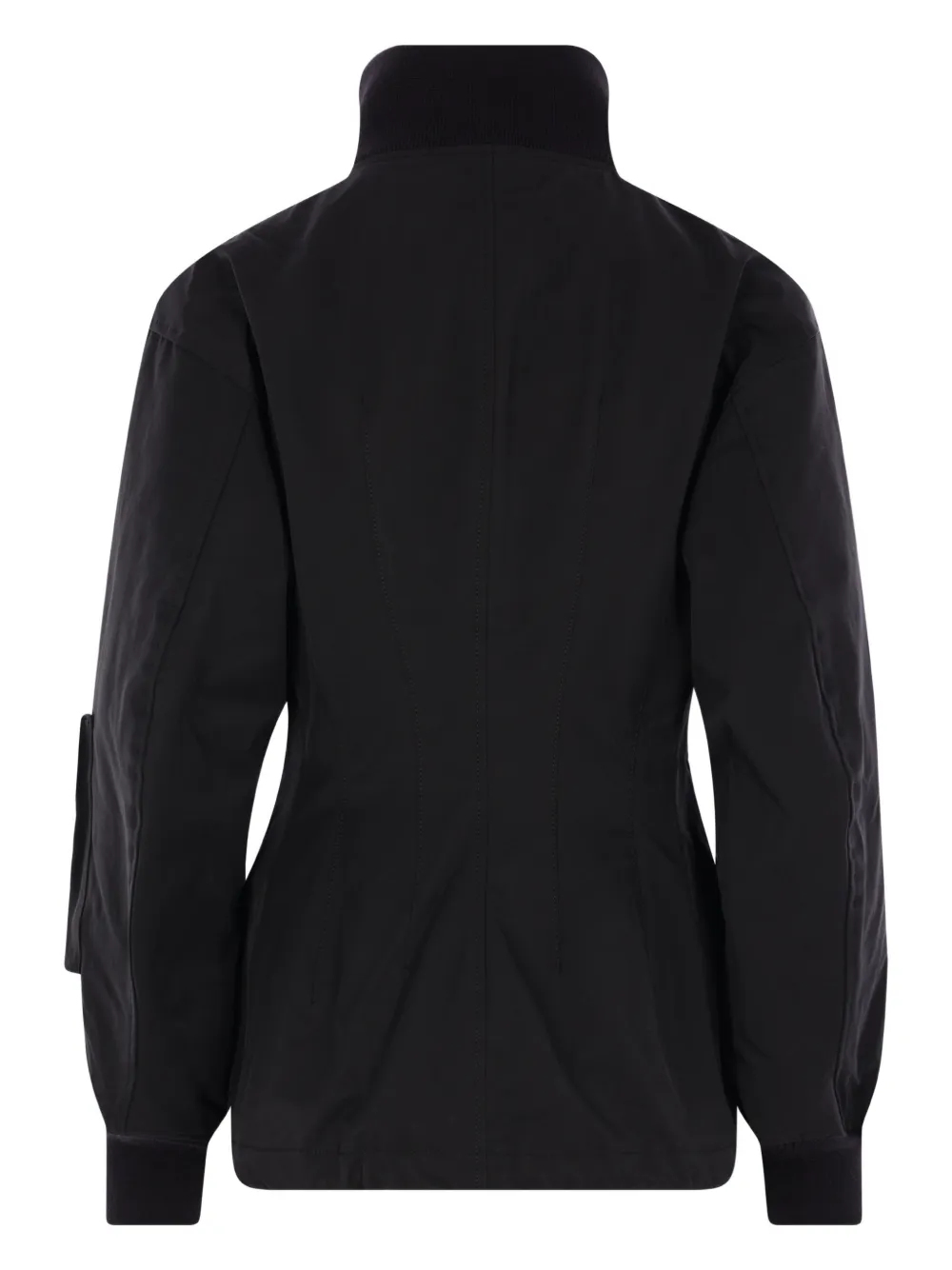 Черная куртка с застежкой-молнией, пуговицами, высоким воротом и карманом на молнии