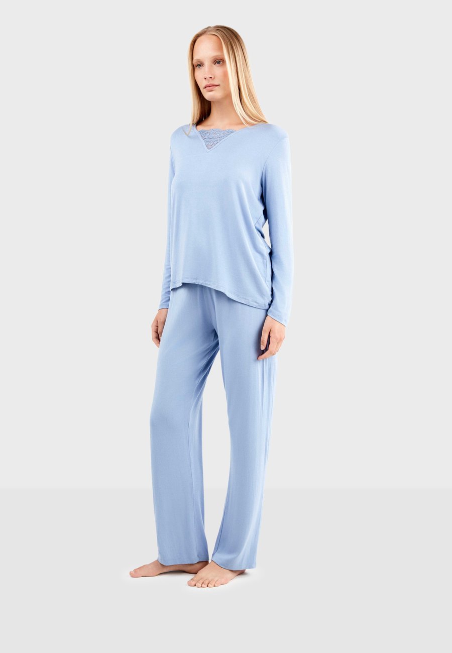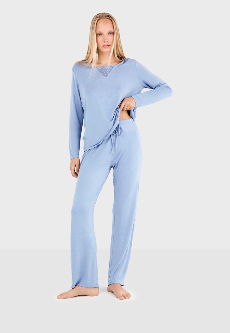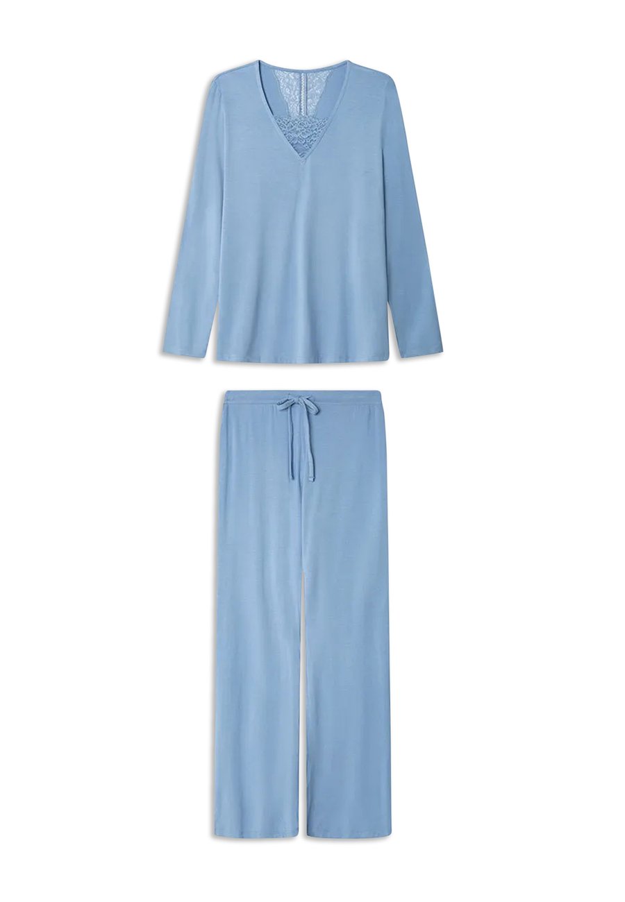 Современный и изысканный пижамный комплект, состоящий из футболки с длинными рукавами, украшенной плетением на груди, и прямых брюк с регулируемым поясом на шнуровке. Сочетание комфорта и стиля для спокойных ночей и моментов отдыха. Посадка: ВысокаяМатериал и уход