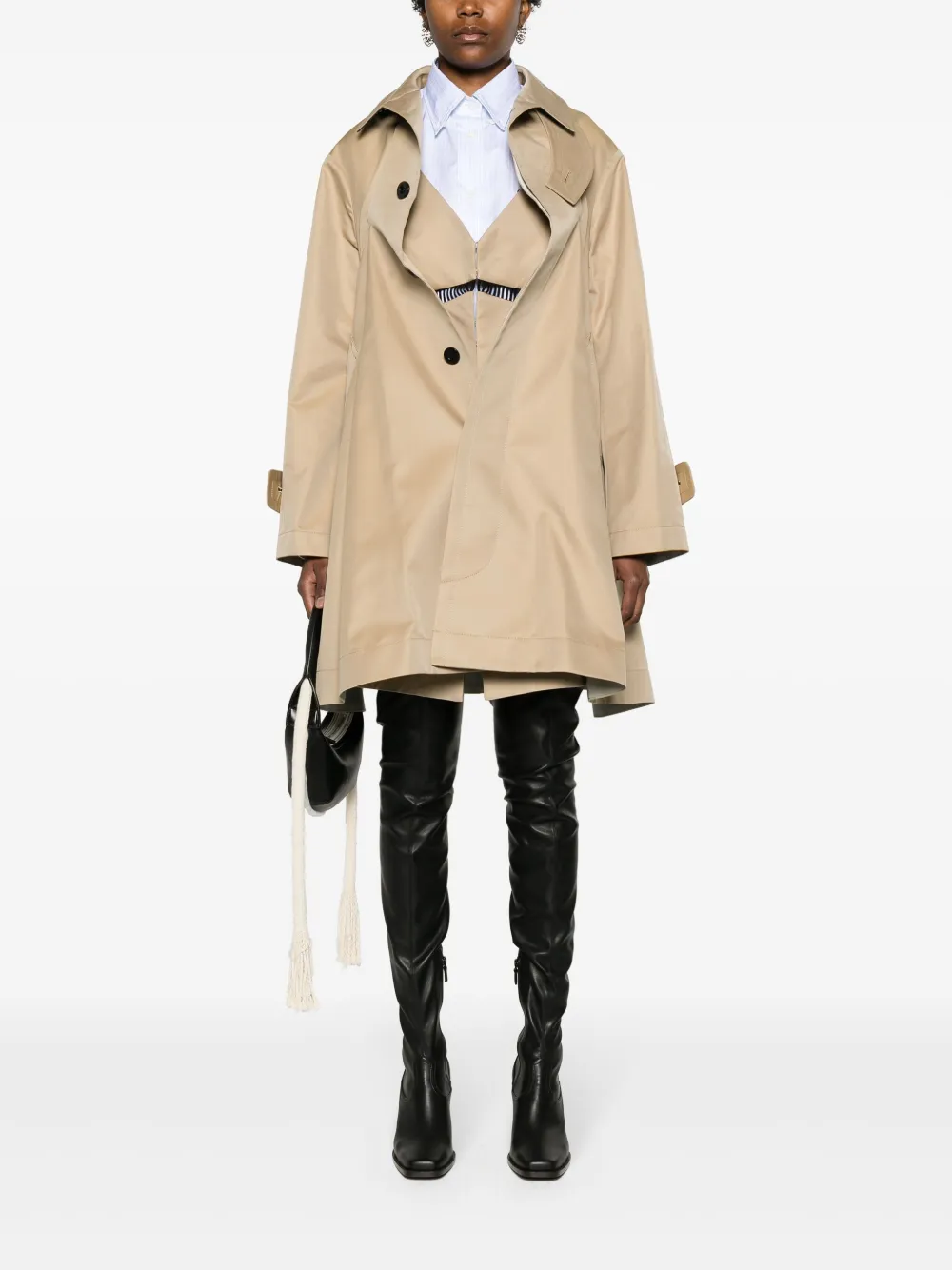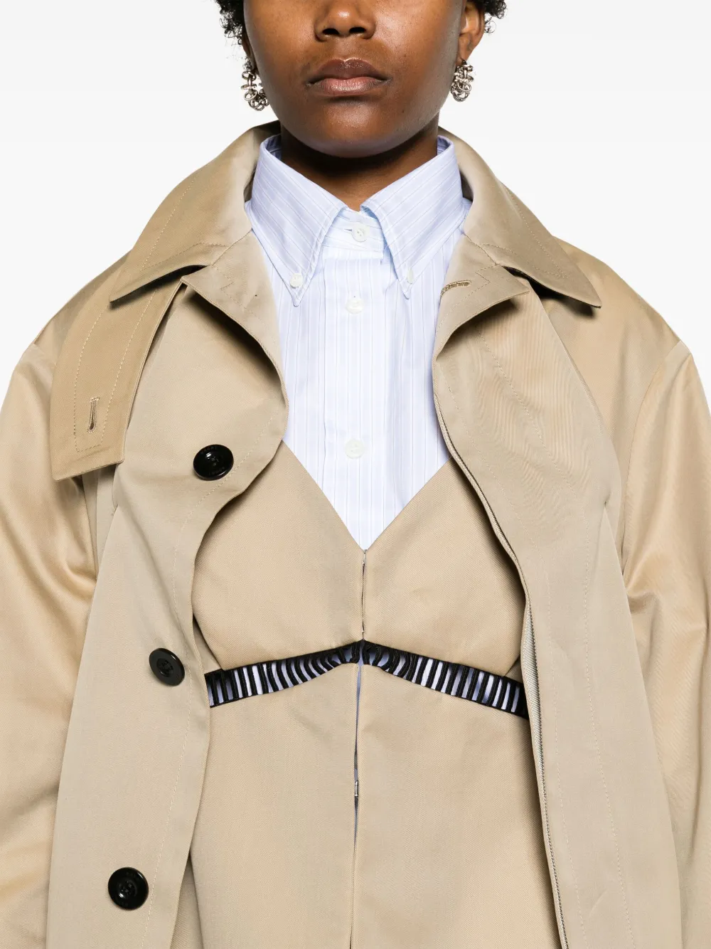 Тренч со складками Sacai, бежевый