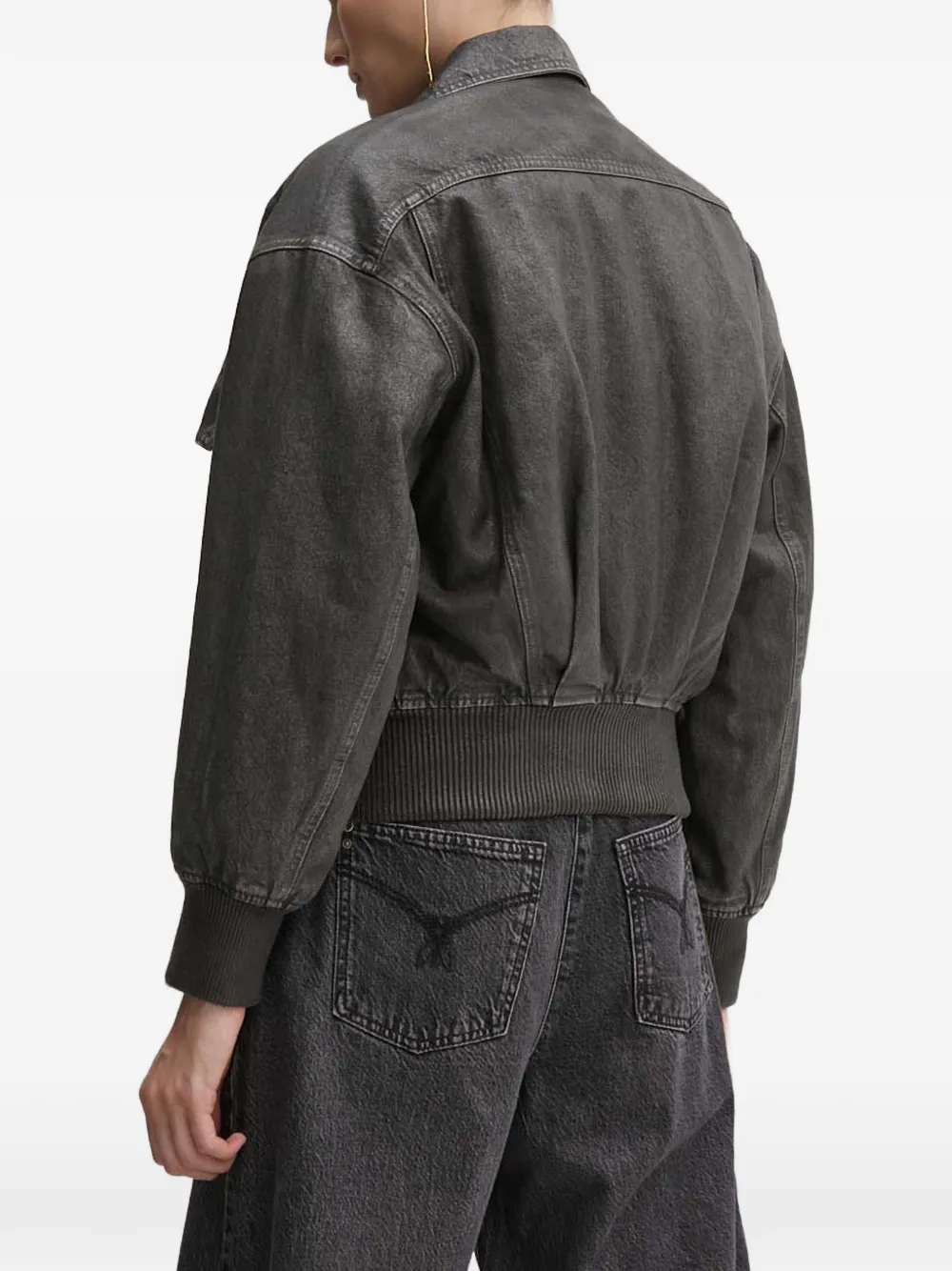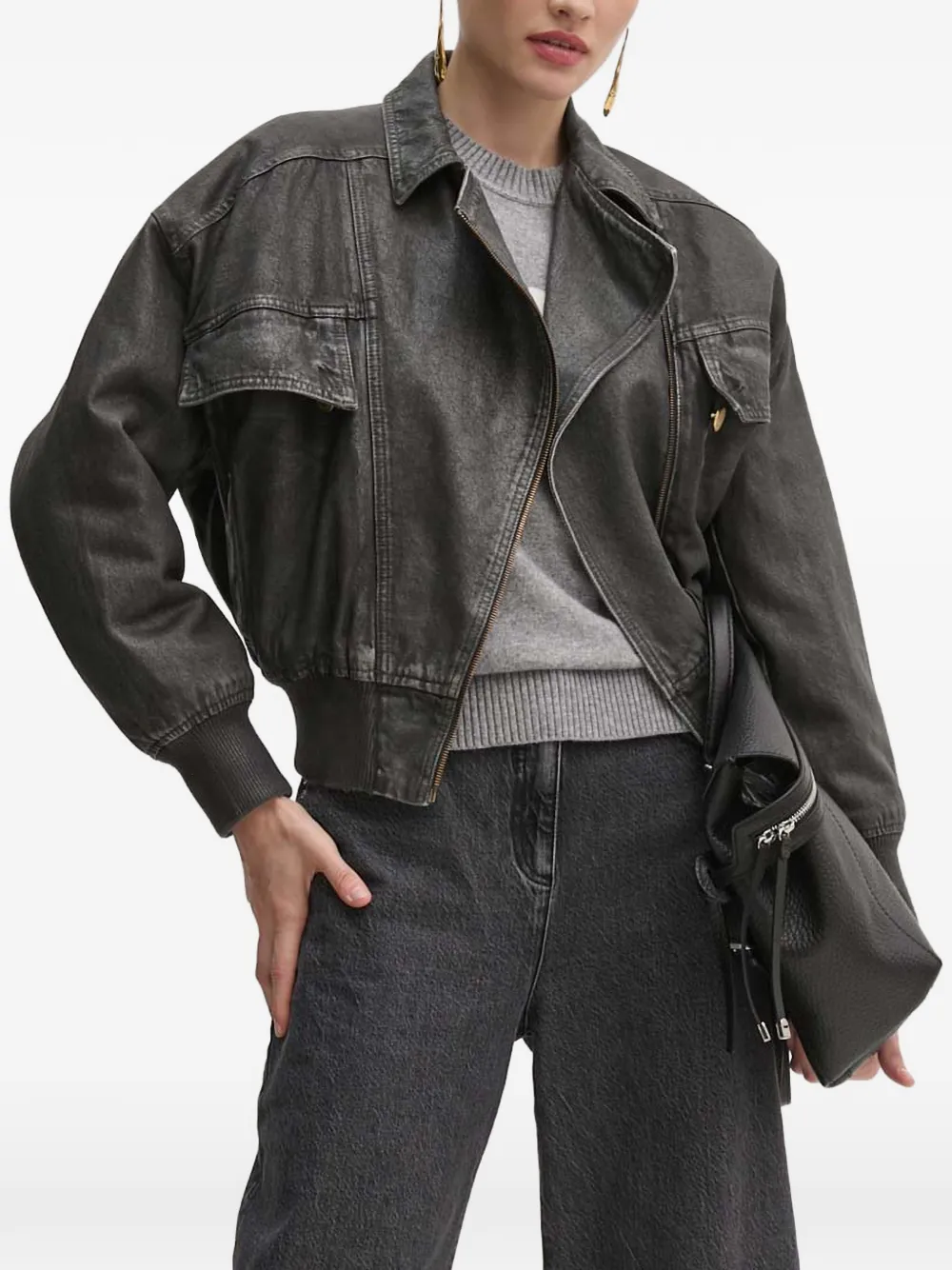 Антрацитовые клапанные карманы, застёжка на молнию, трикотажный (в рубчик) нижний край, трикотажные (в рубчик) манжеты