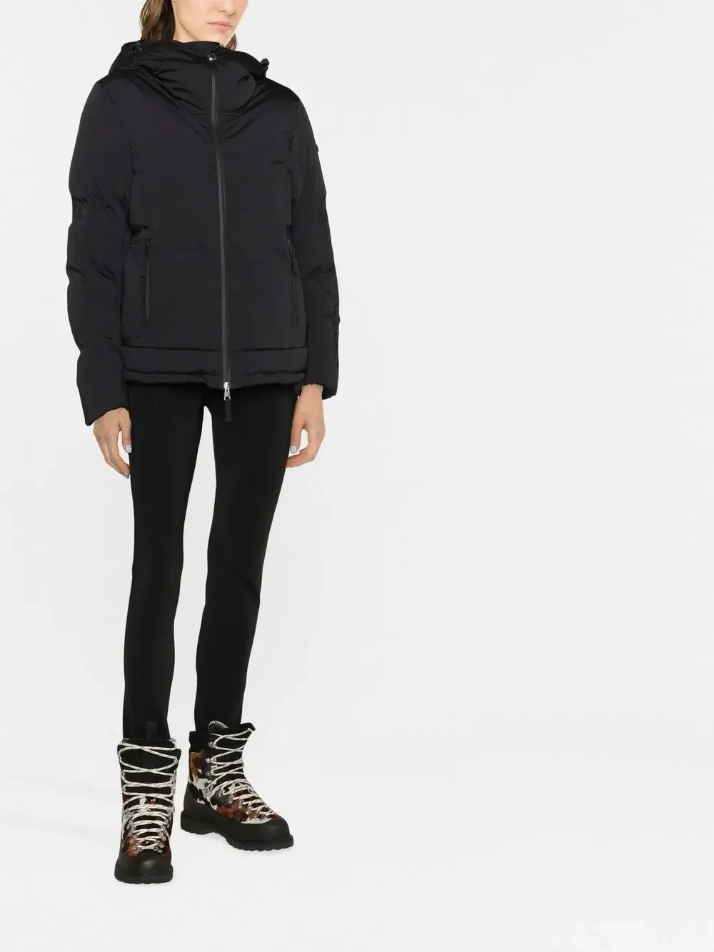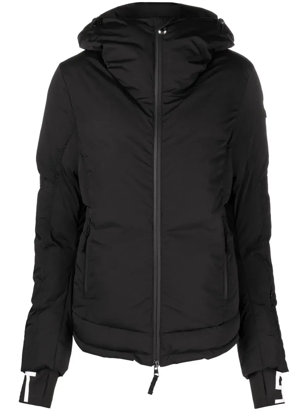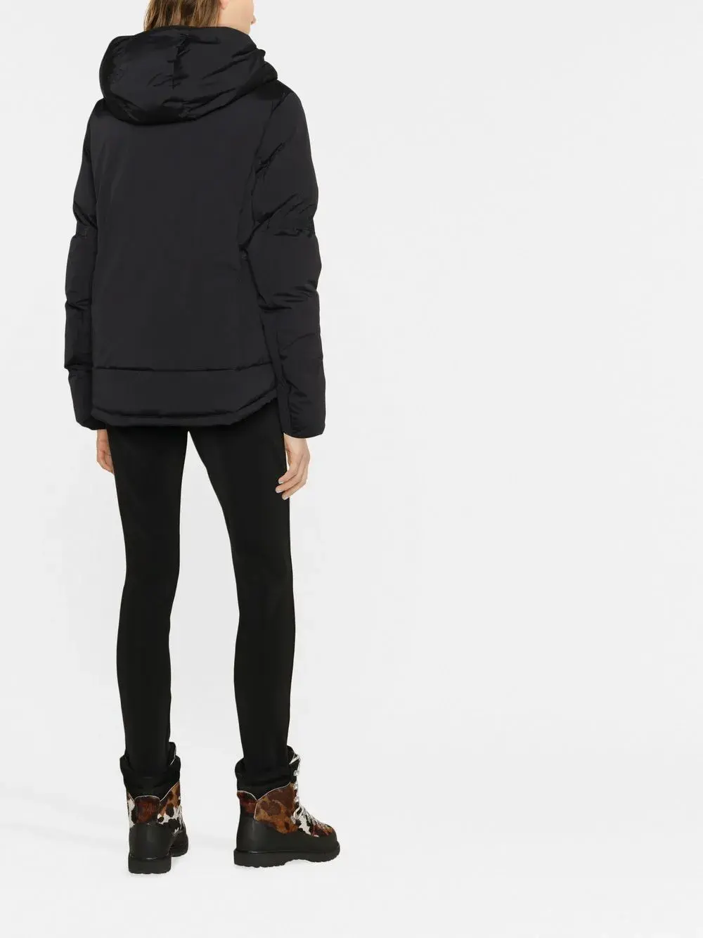 Черный, легкий материал, дутый материал, застежка на молнии спереди, объемные рукава, прямой подол и классический капюшон.
