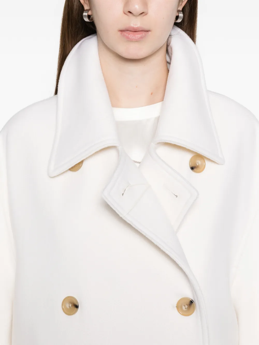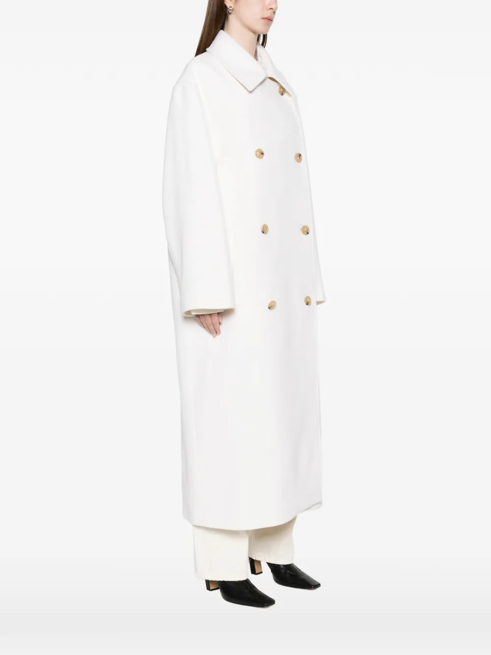 Двубортное шерстяное пальто Toteme, белый 140 043₽