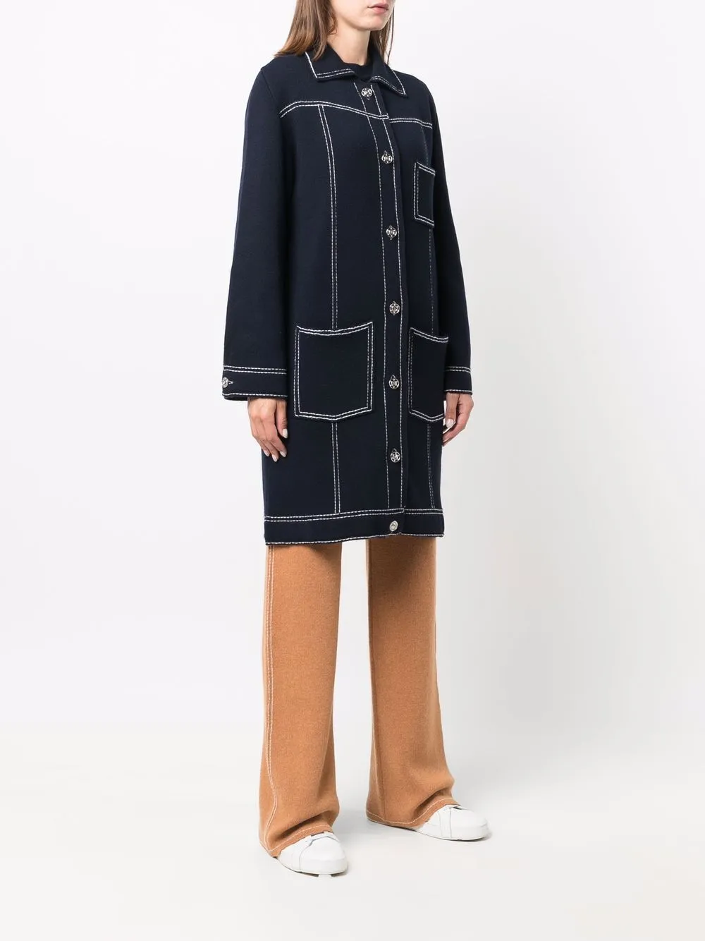 Однобортное пальто с контрастной строчкой Barrie, синий 271 786₽
