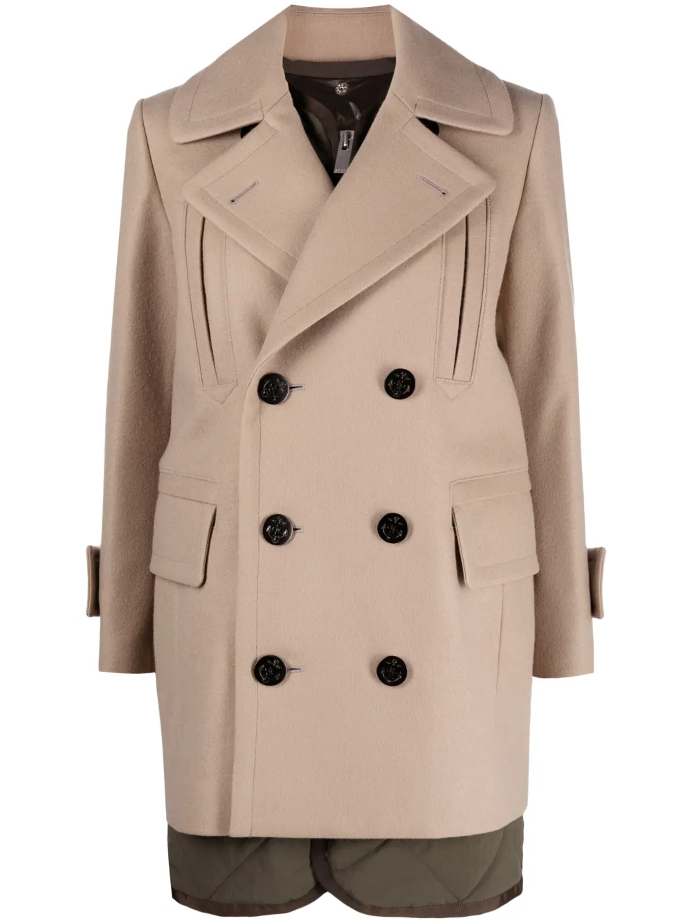 Шерстяное пальто Melton Sacai, бежевый 214 149₽