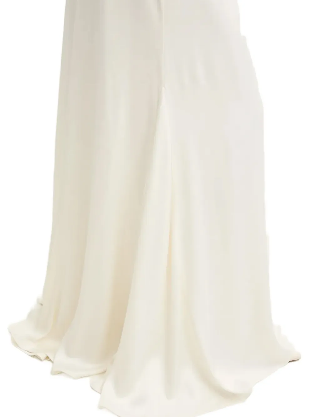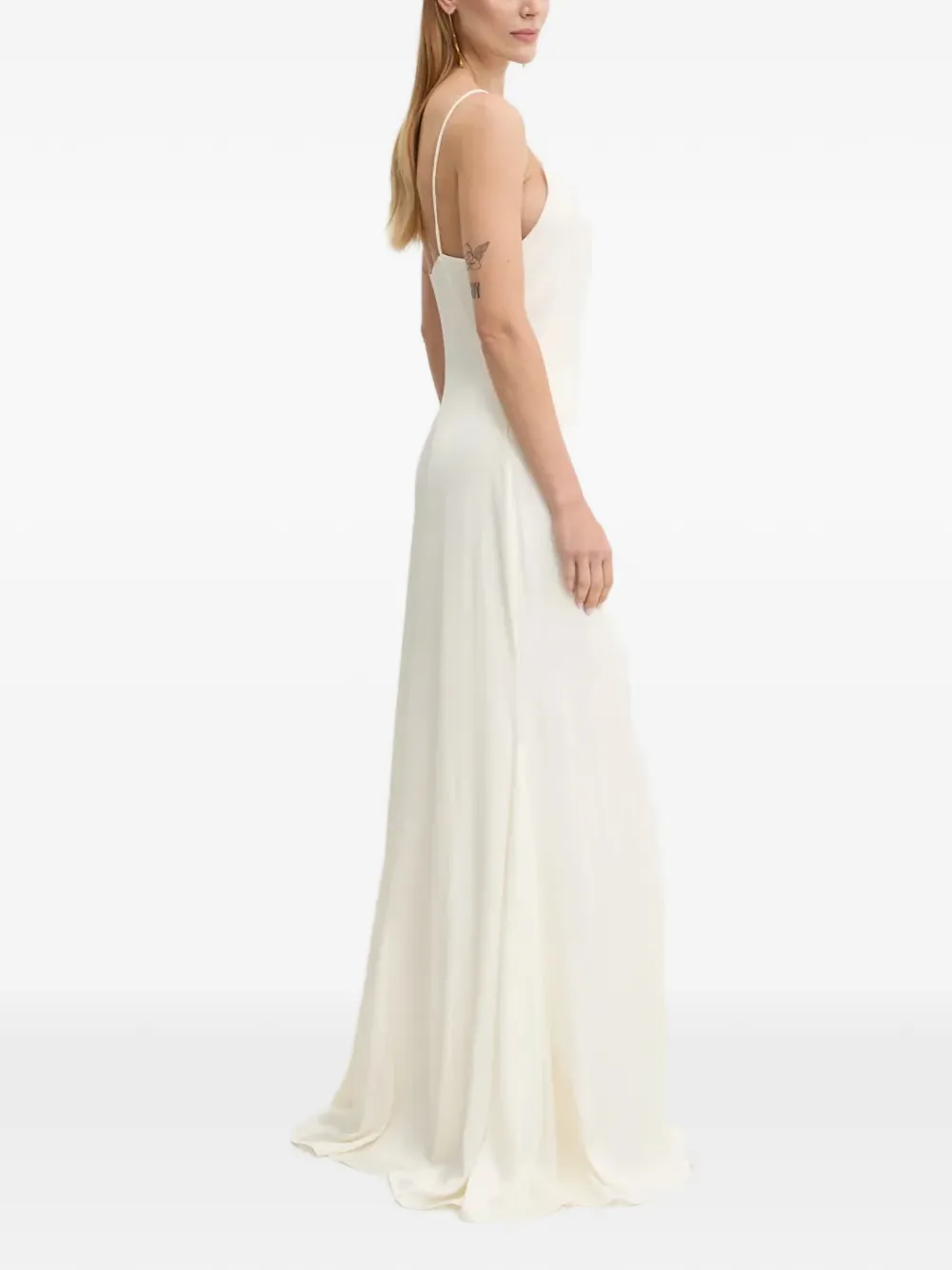Белое платье в пол с V-образным вырезом, бретелями, драпировкой и разрезом спереди