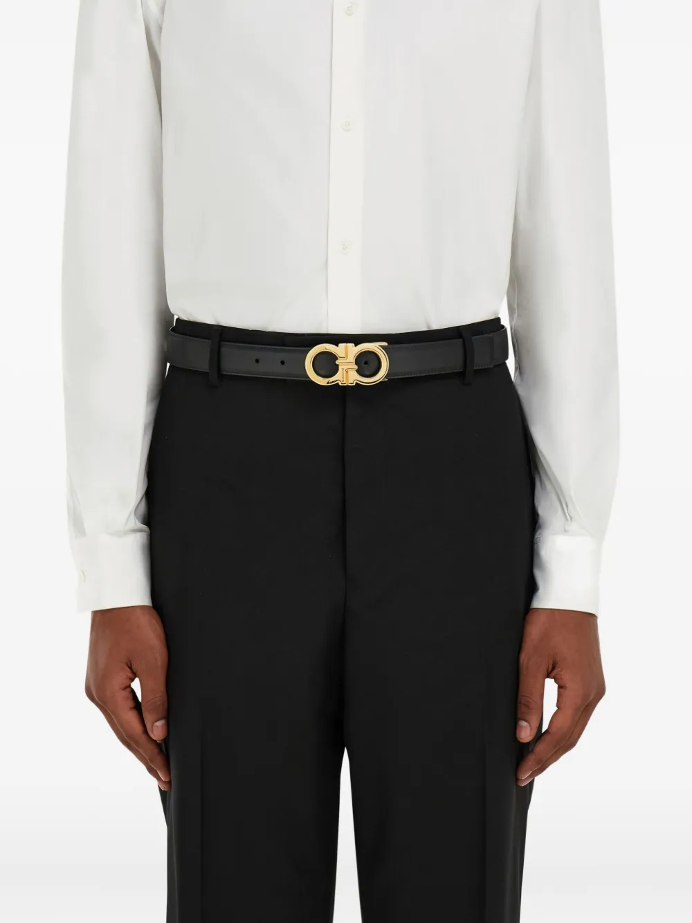 Двусторонний ремень с пряжкой Gancini Ferragamo, черный