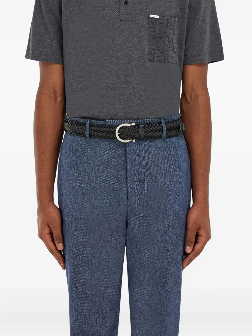 Плетеный ремень с пряжкой Gancini Ferragamo, черный