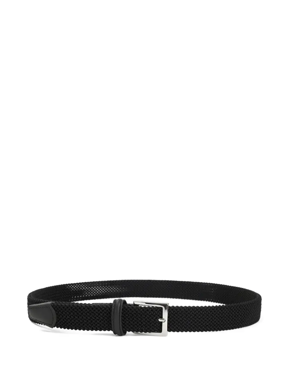 Черная кожа, серебристая пряжка, плетёный дизайн