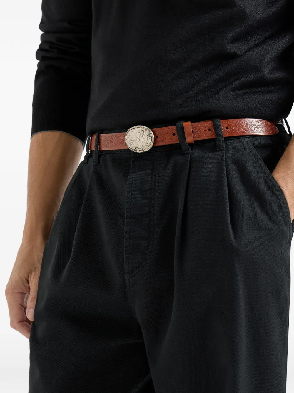 Плетеный ремень с пряжкой Brunello Cucinelli, коричневый 69 402₽