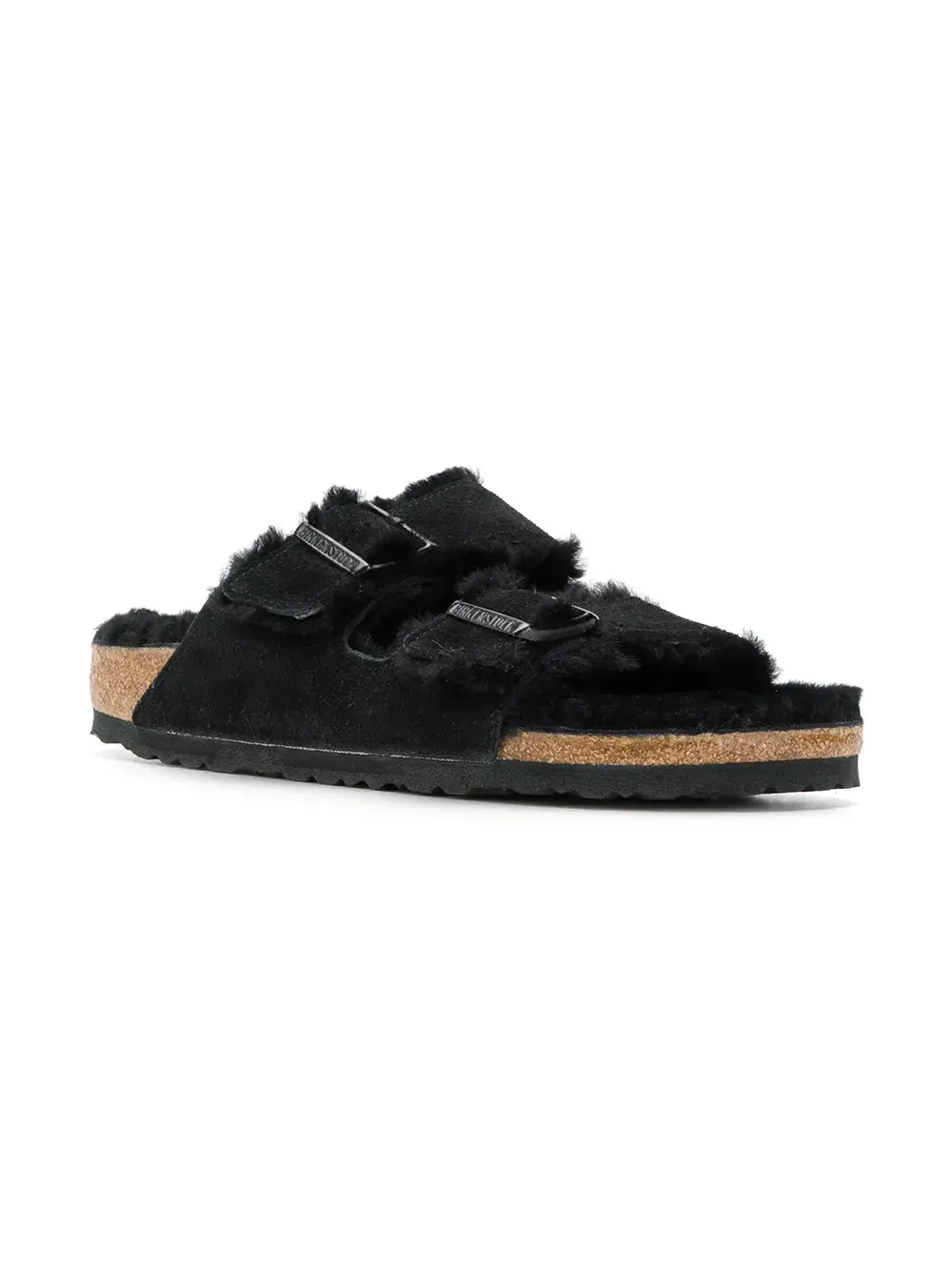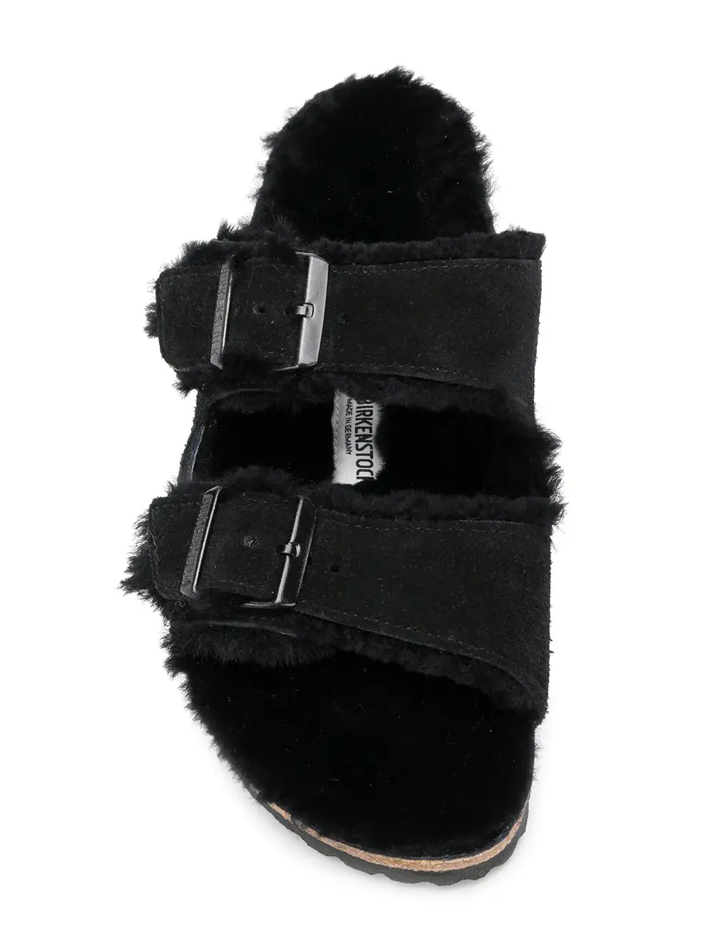 Открытый носок, двойные лямки, застежка на пряжке, модель слип-он, без застежки, плоская подошва и подкладка из овечьей шерсти.