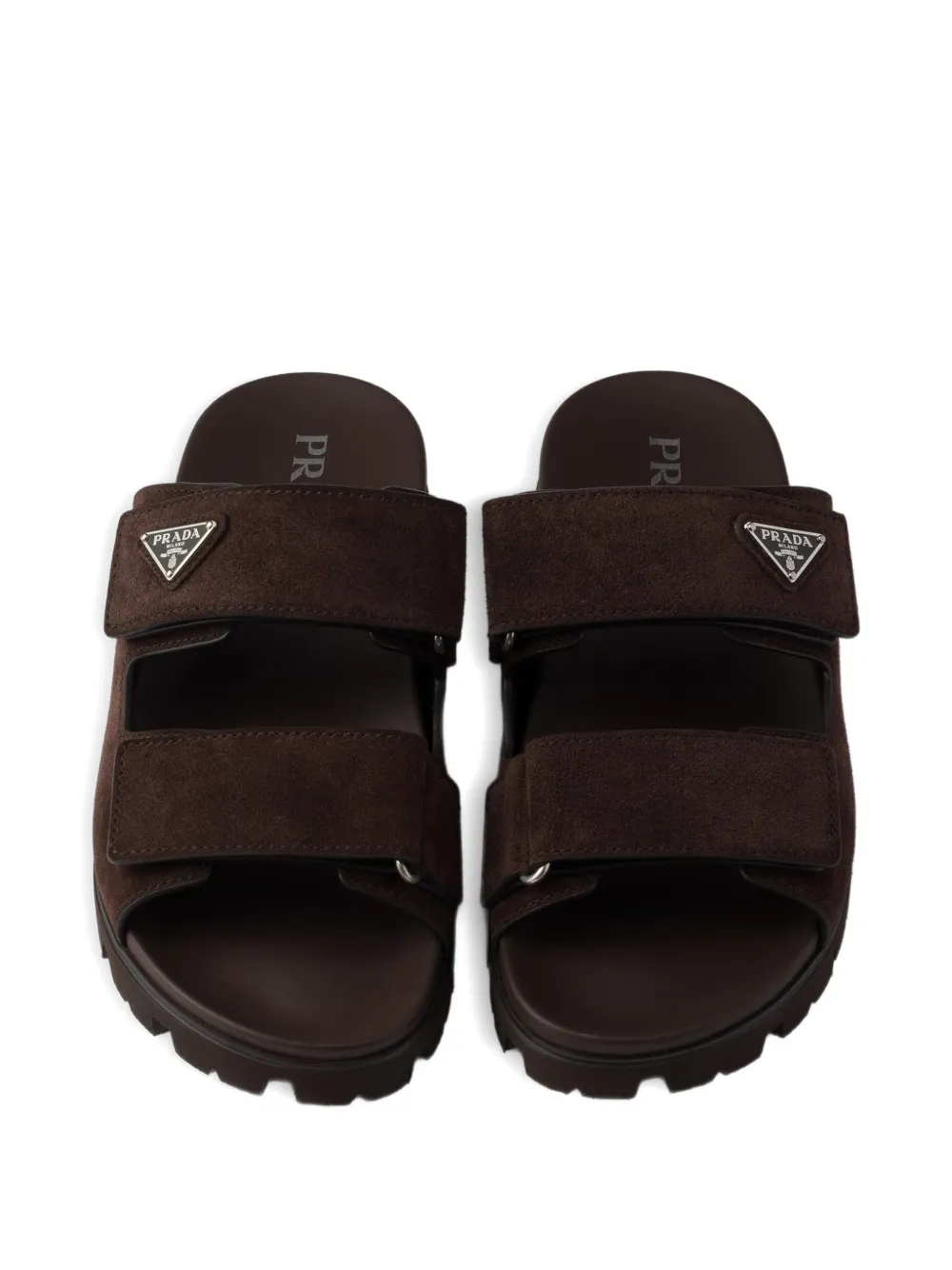 Замшевые сандалии с логотипом Prada, коричневый 108 856₽