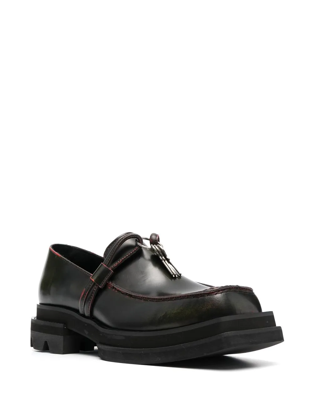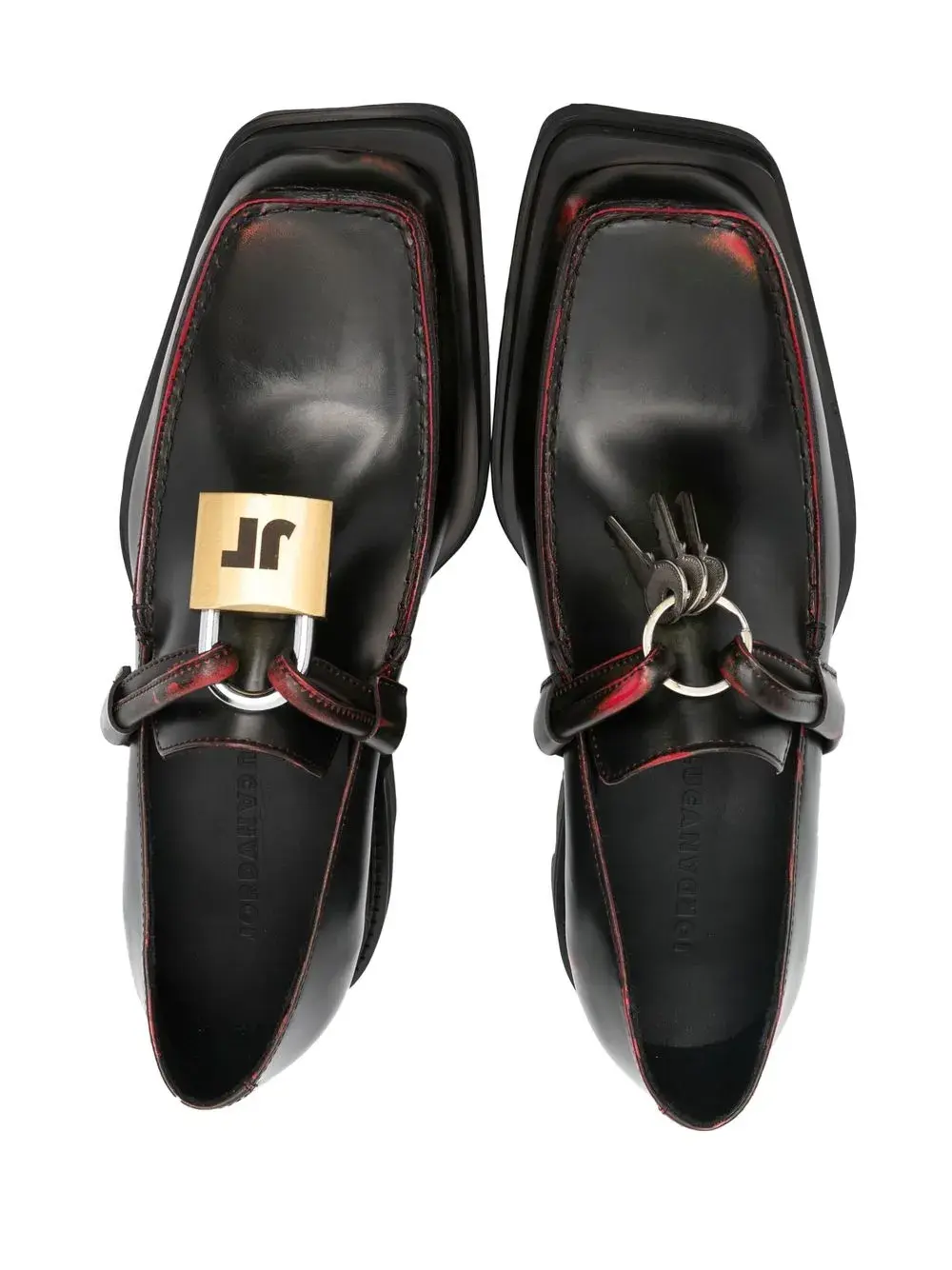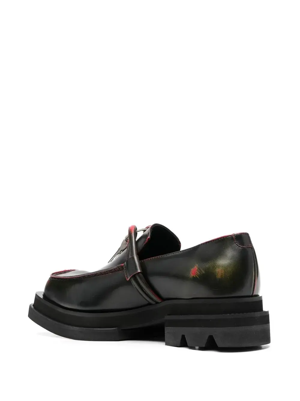 Черный/красный, черный/красный, узор с эффектом разбрызганной краски, квадратный носок, шнуровка спереди, низкий блочный каблук, стелька с логотипом и массивная резиновая подошва c протектором.