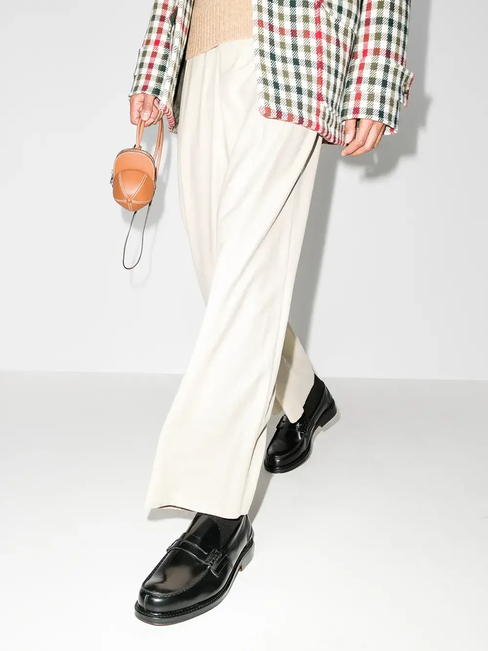 Низкий наборный каблук, миндалевидный носок, прорези на язычке и кожаная подкладка.