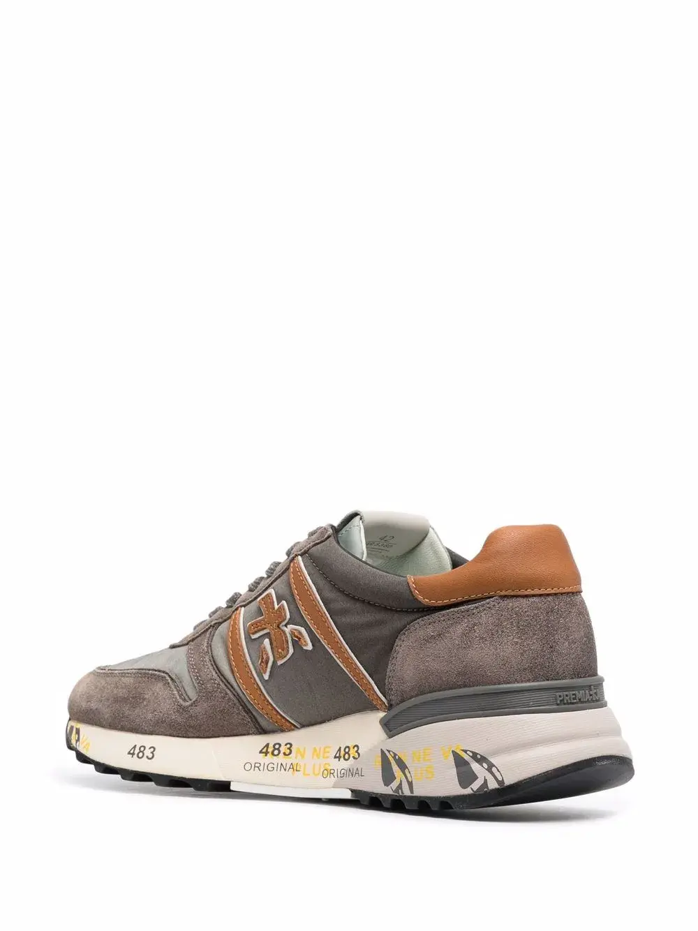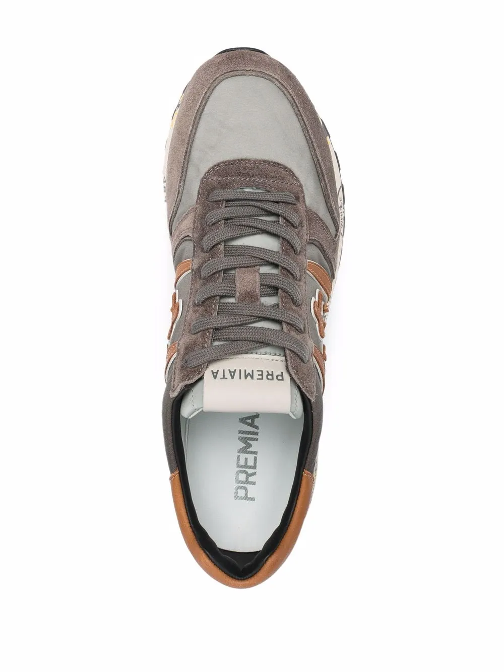 Контрастные вставки, нашивка с логотипом на язычке, стелька с логотипом, закругленный носок, шнуровка спереди и плоская резиновая подошва.