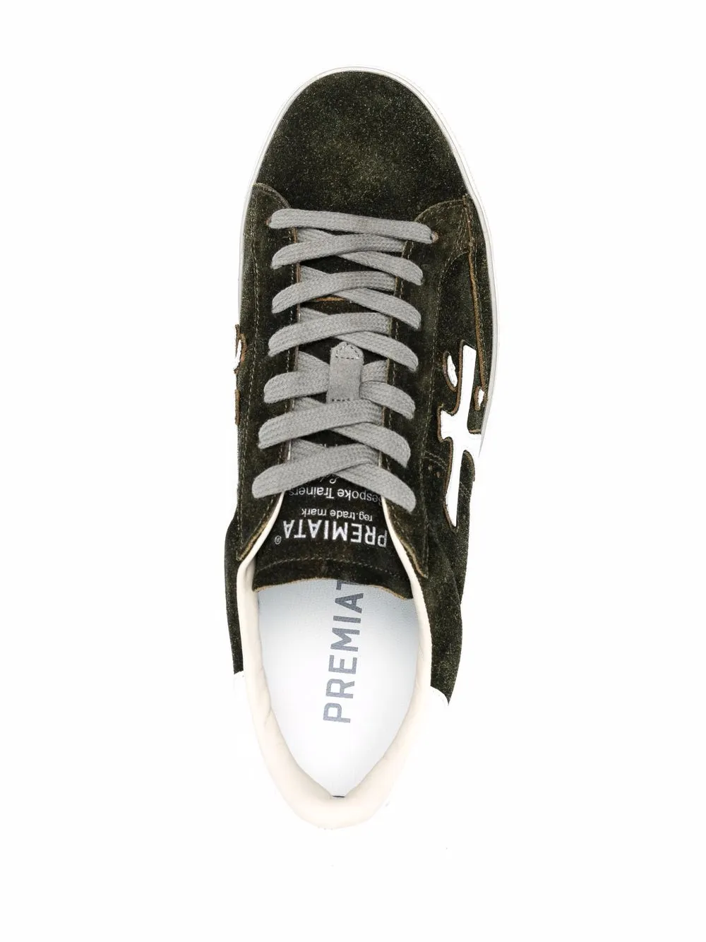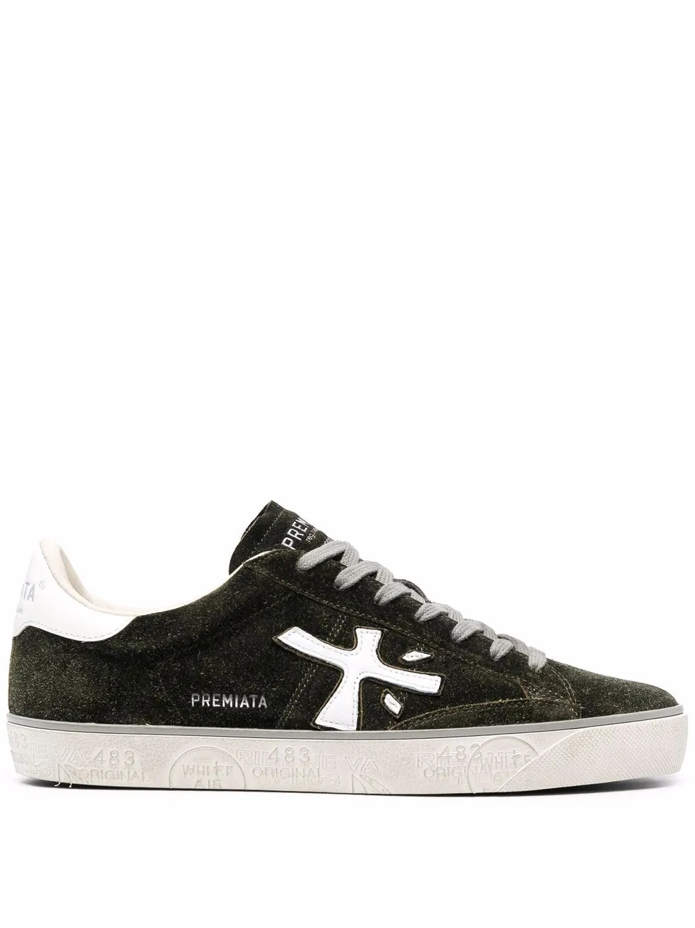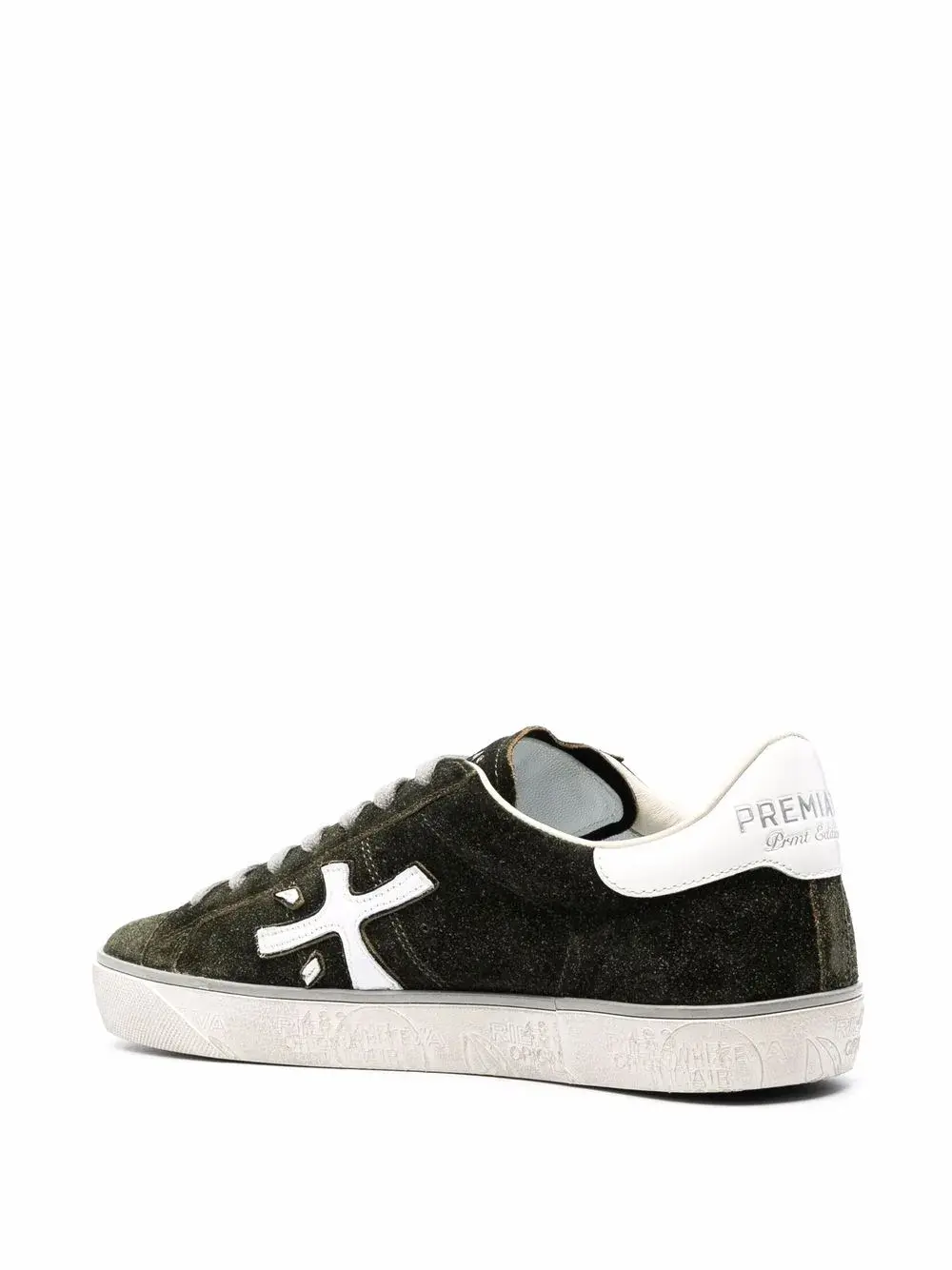 Язычок с логотипом, нашивка с логотипом сбоку, закругленный носок, шнуровка спереди, стелька с логотипом и плоская резиновая подошва.