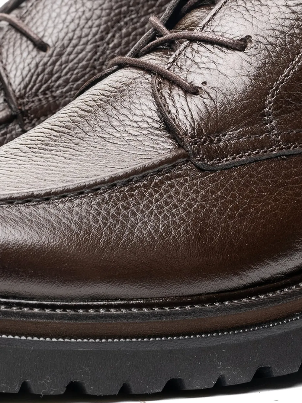 Коричневые, шнуровка, рельефная подошва, высота до щиколотки, петля сзади, круглый носок