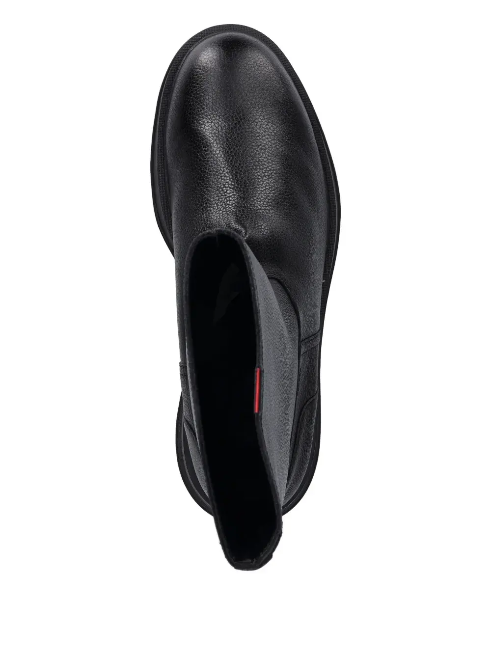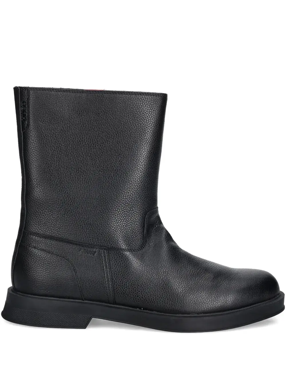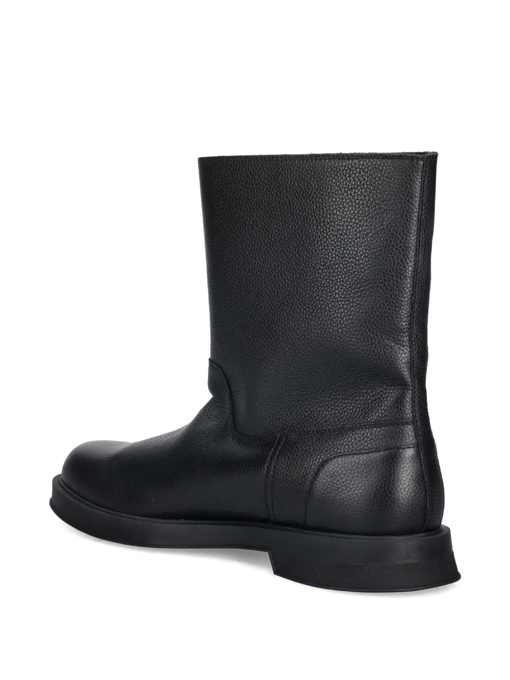 Чёрная кожа, фактурная поверхность, модель без застёжки, плоская подошва, высота до щиколотки, круглый носок