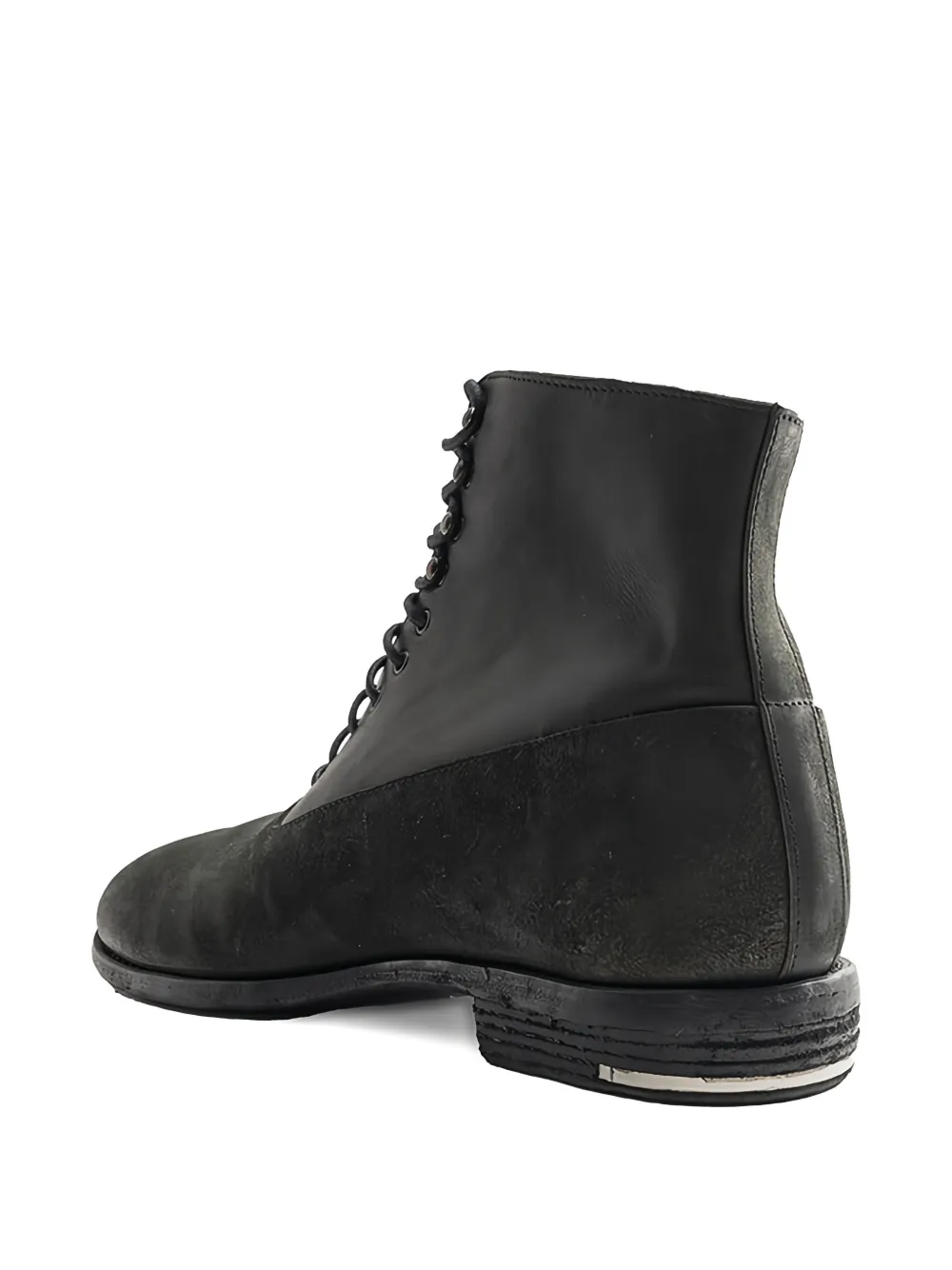 Темно-серые кожаные ботинки на шнуровке до щиколотки на высоком каблуке