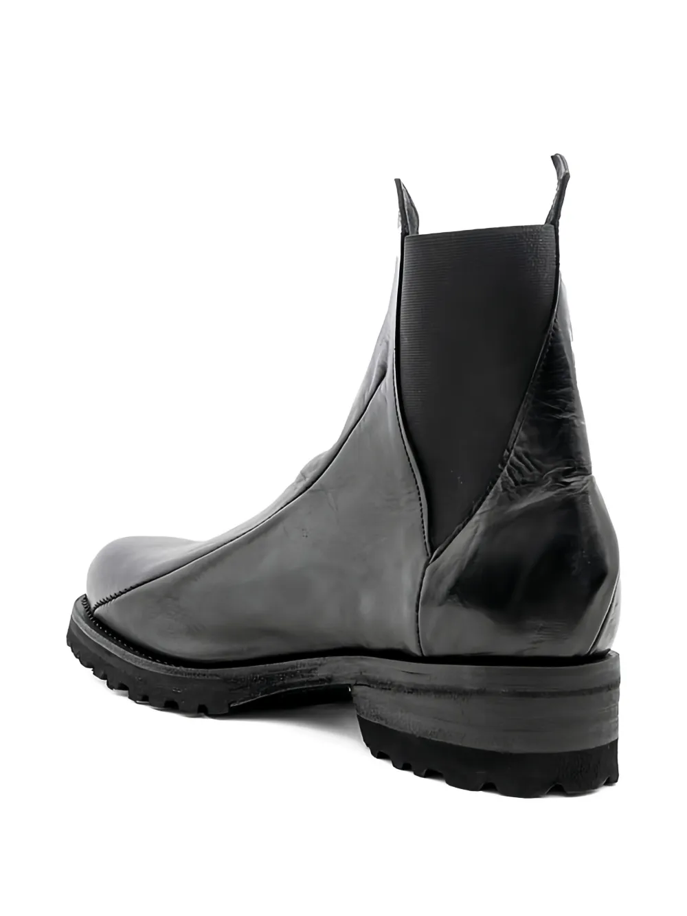 Черная кожаная обувь с протекторной подошвой, закругленным носком и эластичными боковыми вставками
