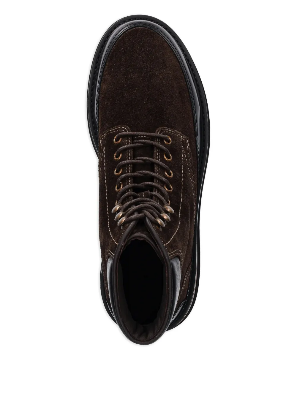 Коричневый верх из замши, кожаные вставки, шнуровка, круглый носок, рифлёная подошва