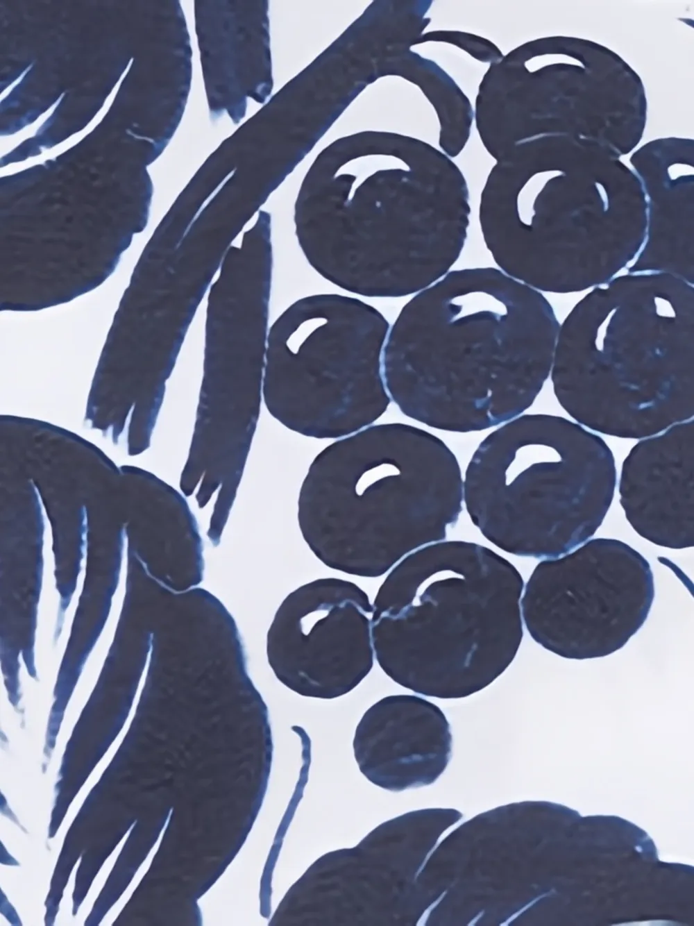 Белый и синий цветочный принт, пряжка, боковые карманы в шве, скрытая застежка спереди.