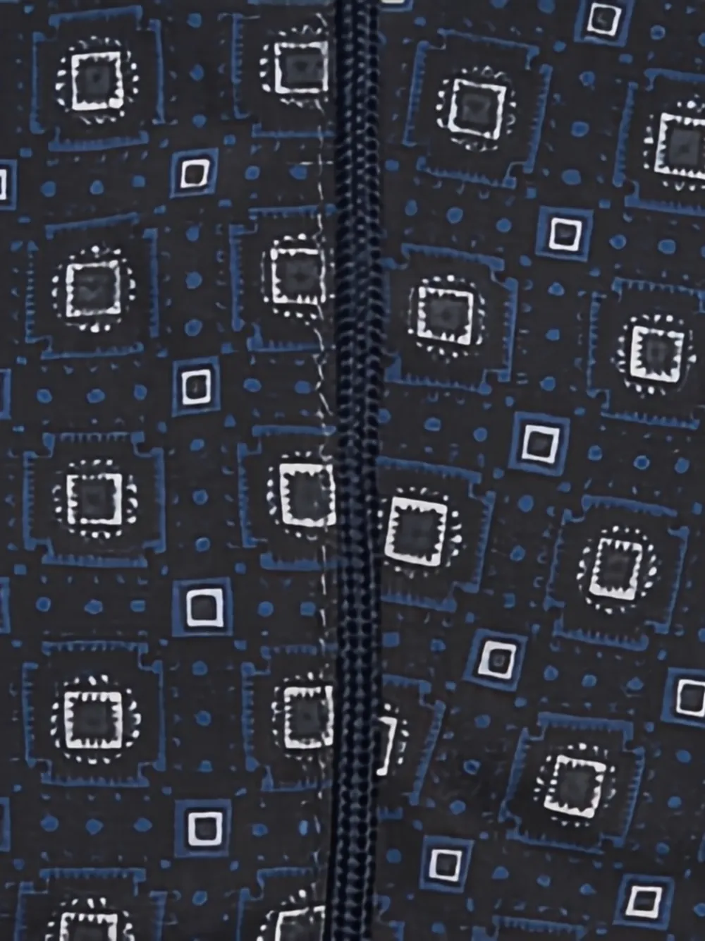 Ночная ирисово-синяя расцветка с геометрическим принтом, шнурок для застегивания, боковые карманы, задний карман.