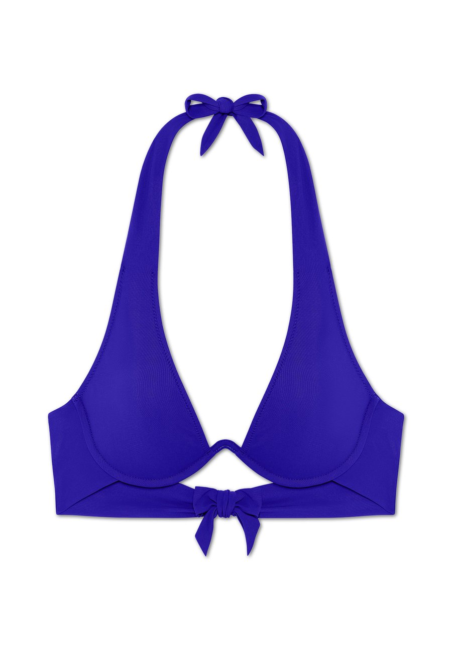 Верх купальника на косточках. Глубокий вырез. Чашечки с открытыми боками. Поддерживающая ламинированная вставка по бокам чашечек. Завязывается на затылке и спине широкими бретелями. Вид спорта: ПлаваниеМатериал и уход