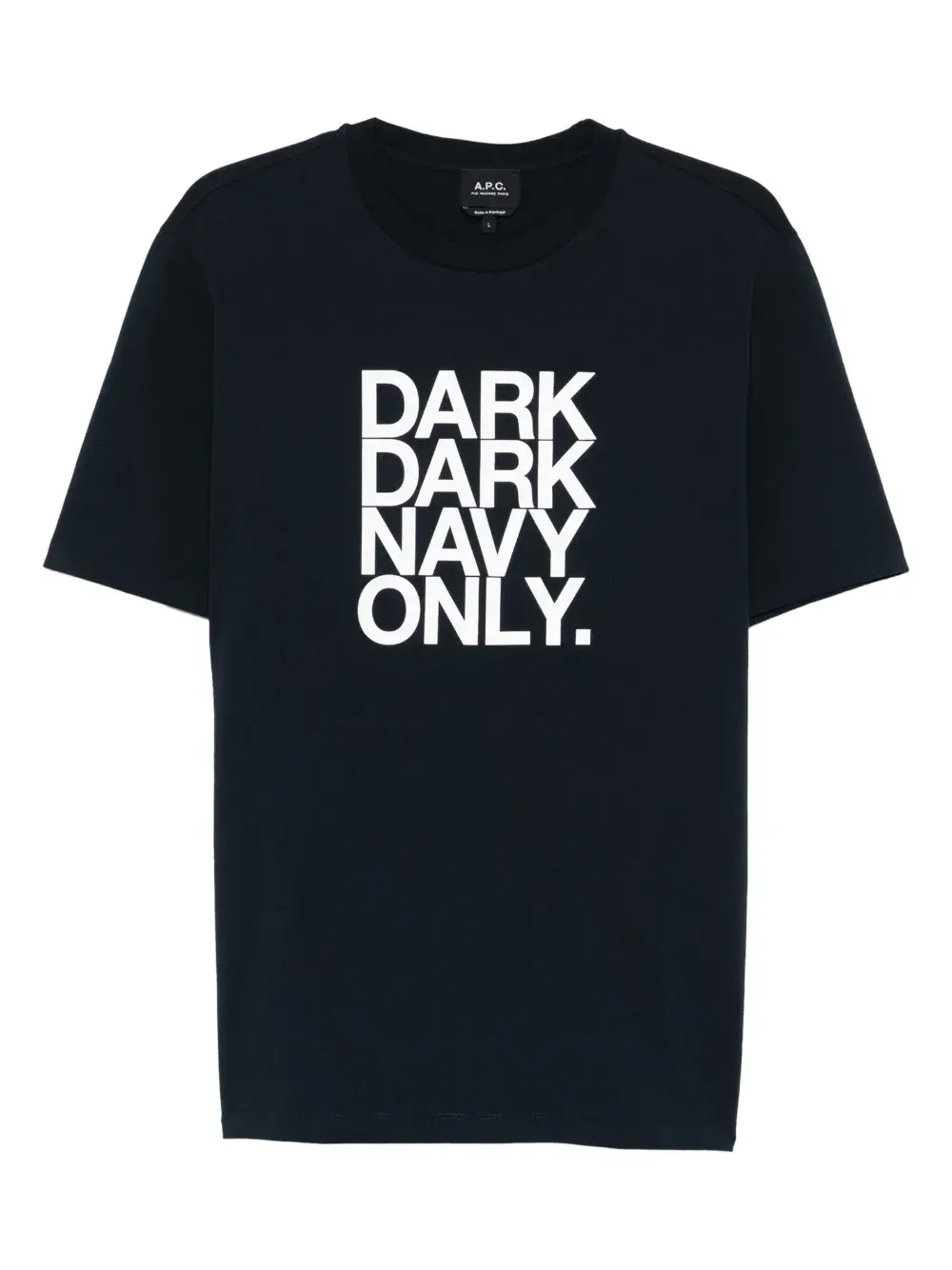 Темно-синий принт с надписью, круглый вырез, короткие рукава