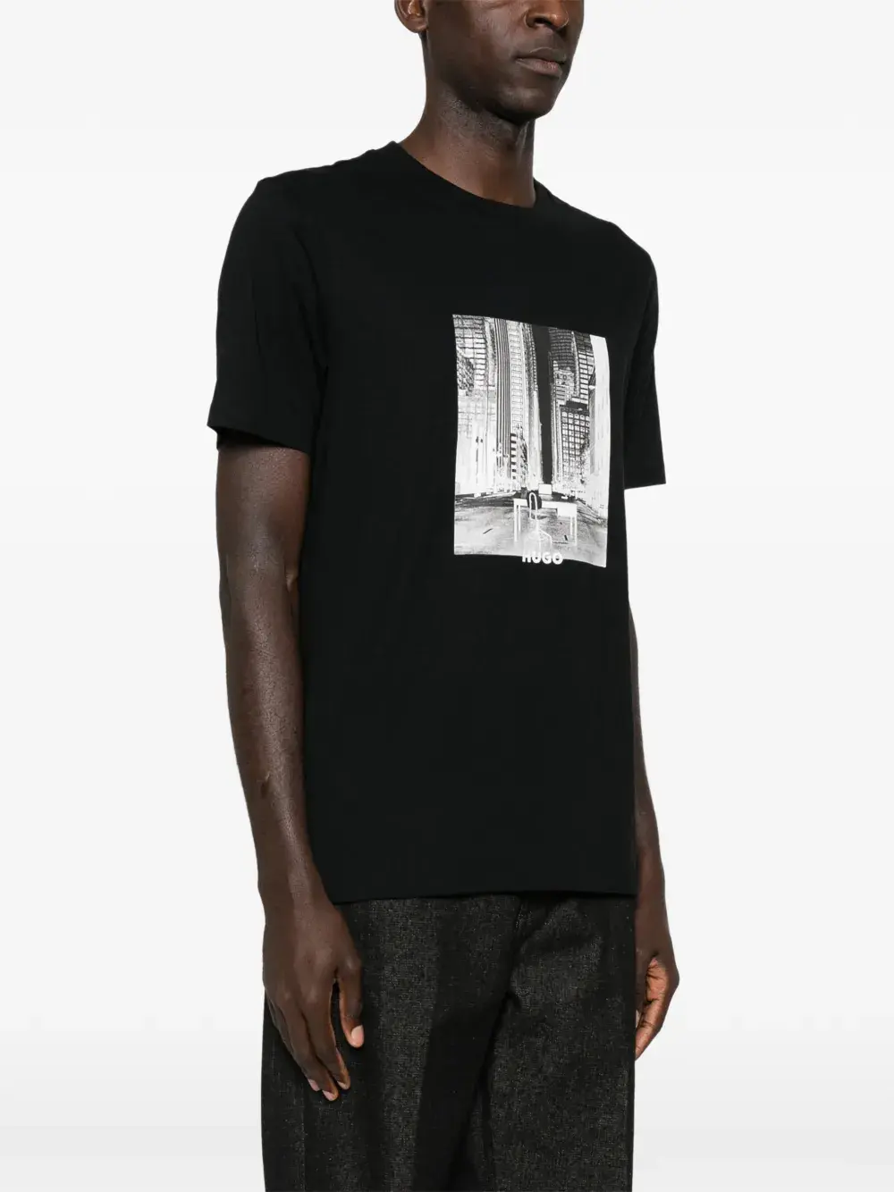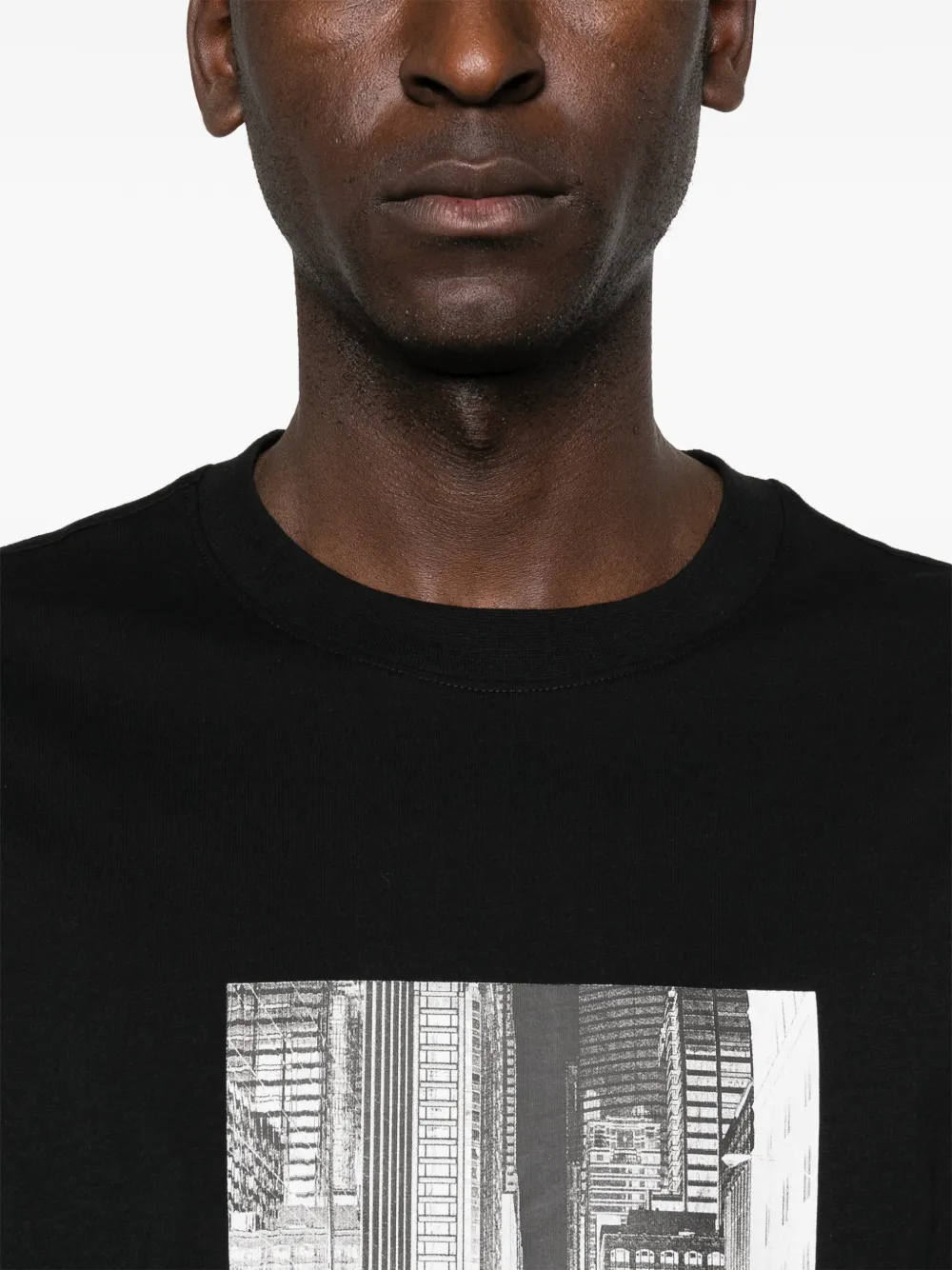 Черная футболка с графическим принтом, круглым вырезом и короткими рукавами