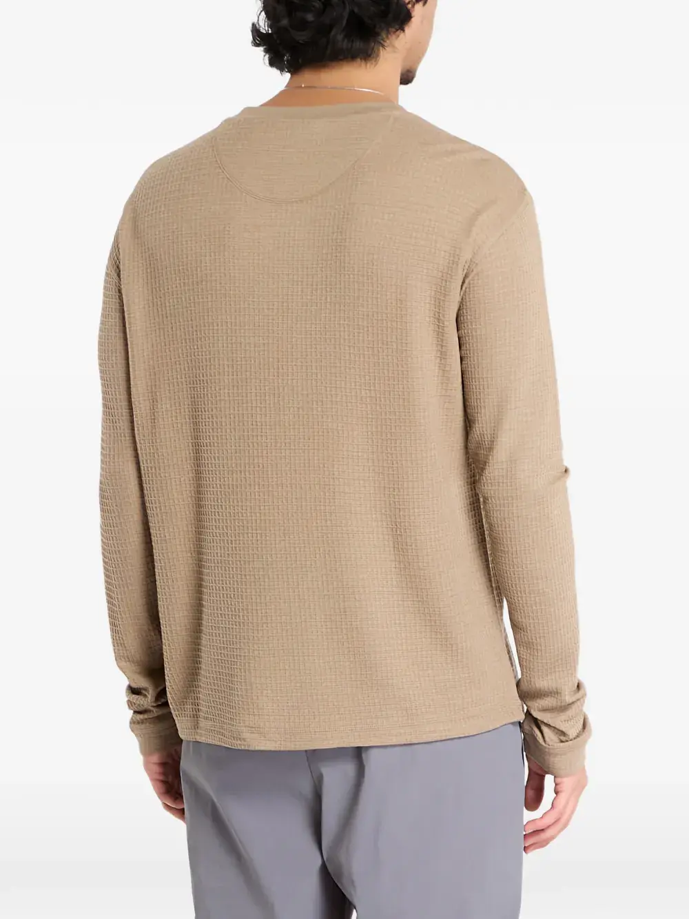 Бежевый лонгслив вафельной вязки с круглым вырезом