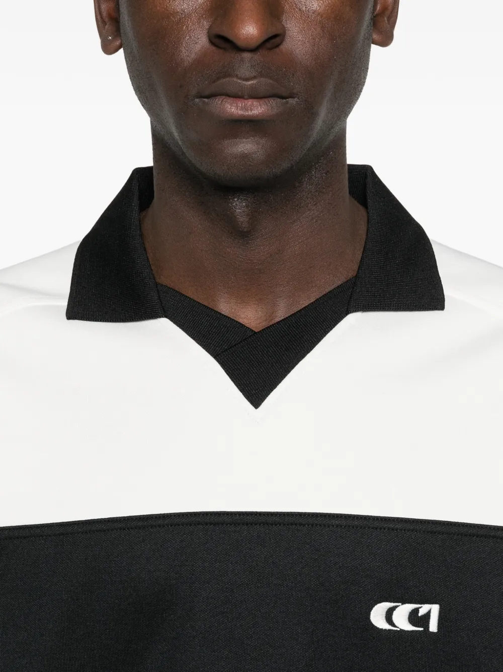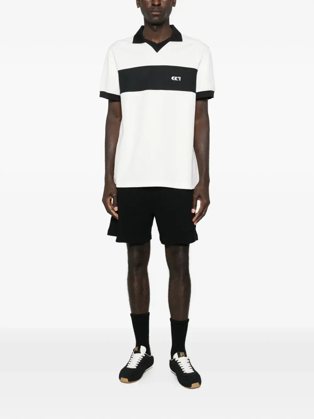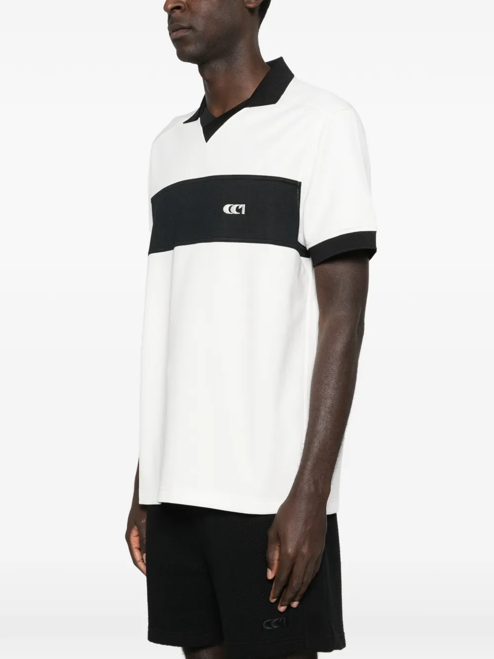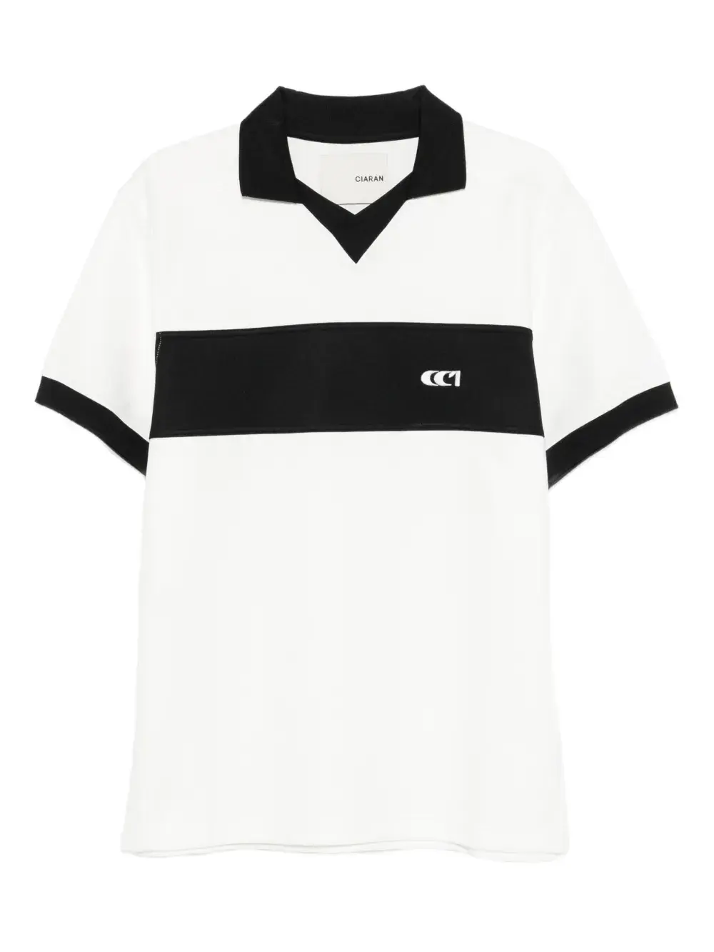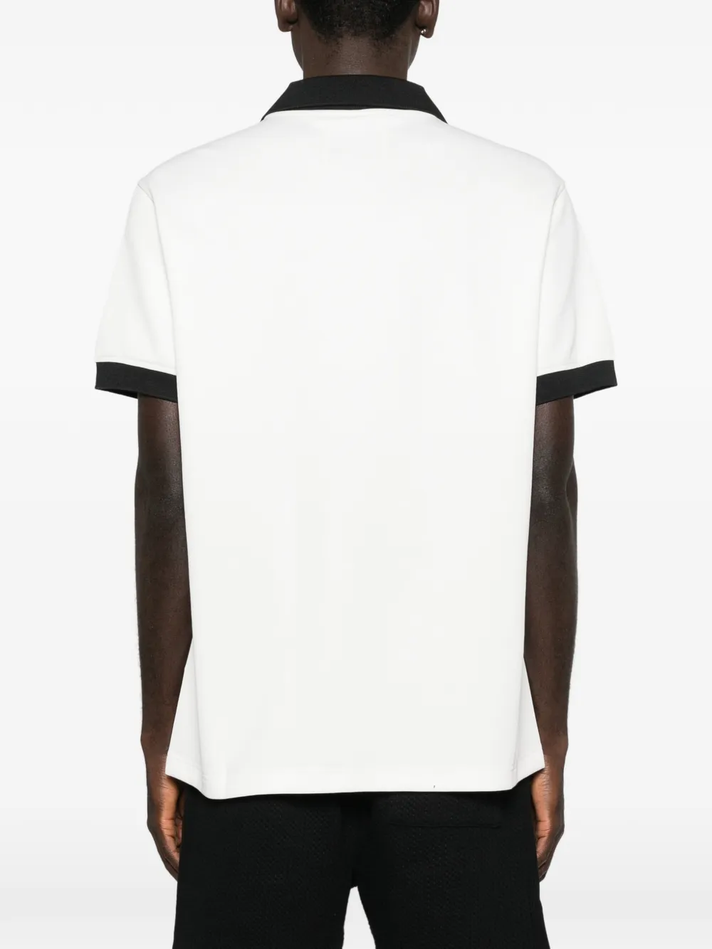 Белая-чёрная рубашка поло с короткими рукавами, панельным дизайном, вышитым логотипом и отделкой