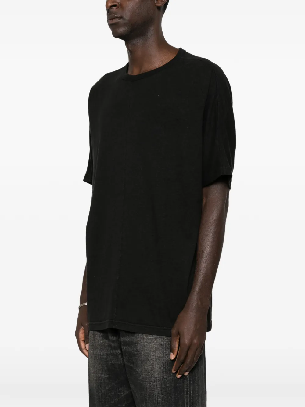 Черная футболка с выделенными швами, короткими рукавами и круглым вырезом