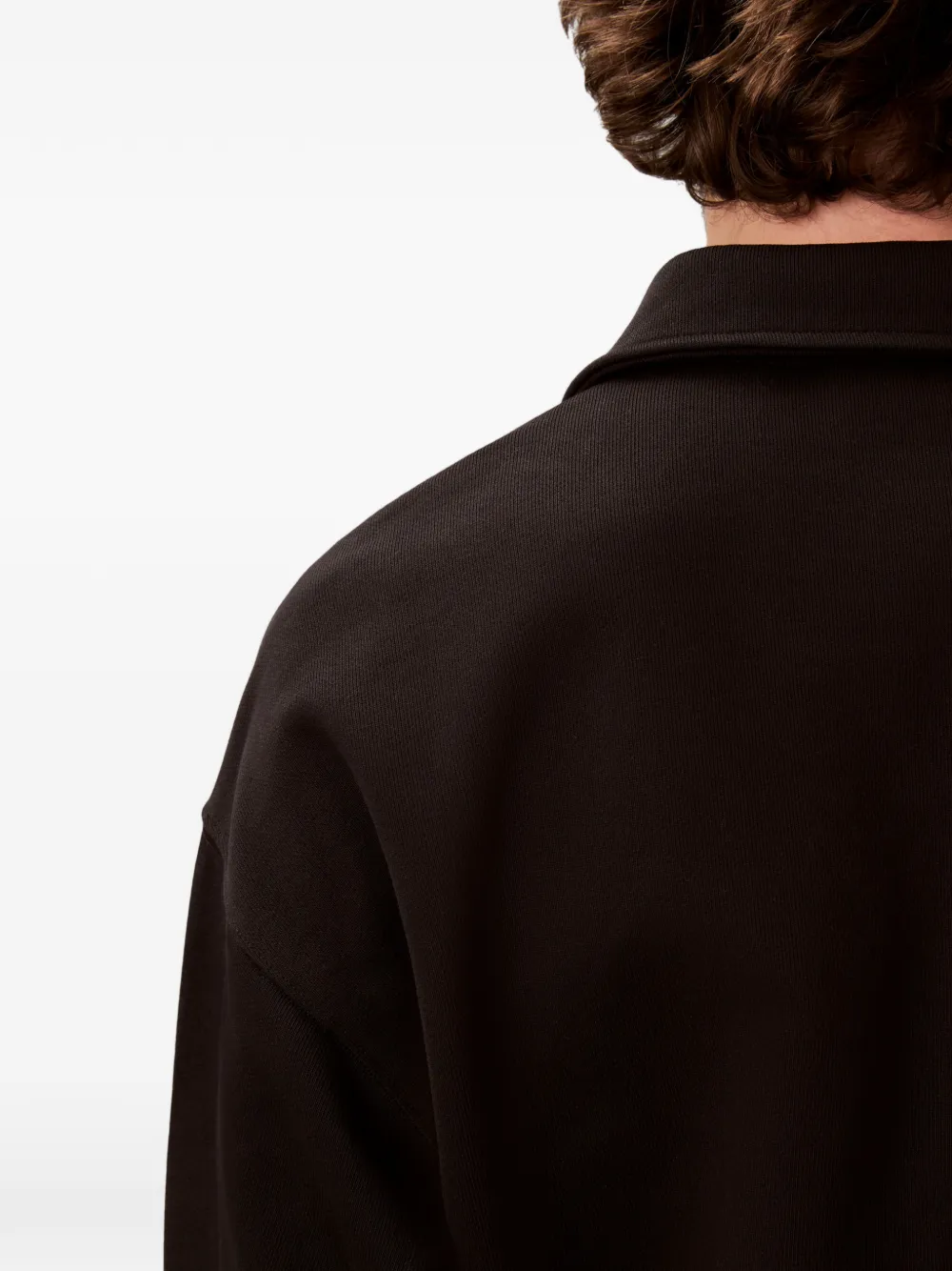 Темно-коричневый пуловер с воротником поло, нашивкой с логотипом, застежкой на пуговицы и длинными рукавами