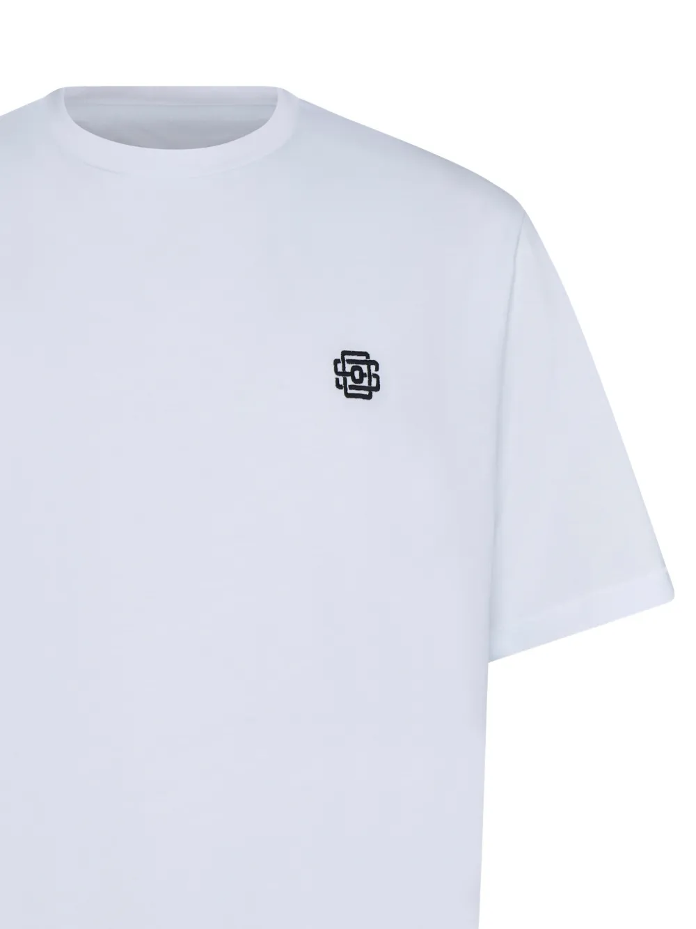 Белый свитшот с вышитым логотипом, круглый вырез, короткие рукава