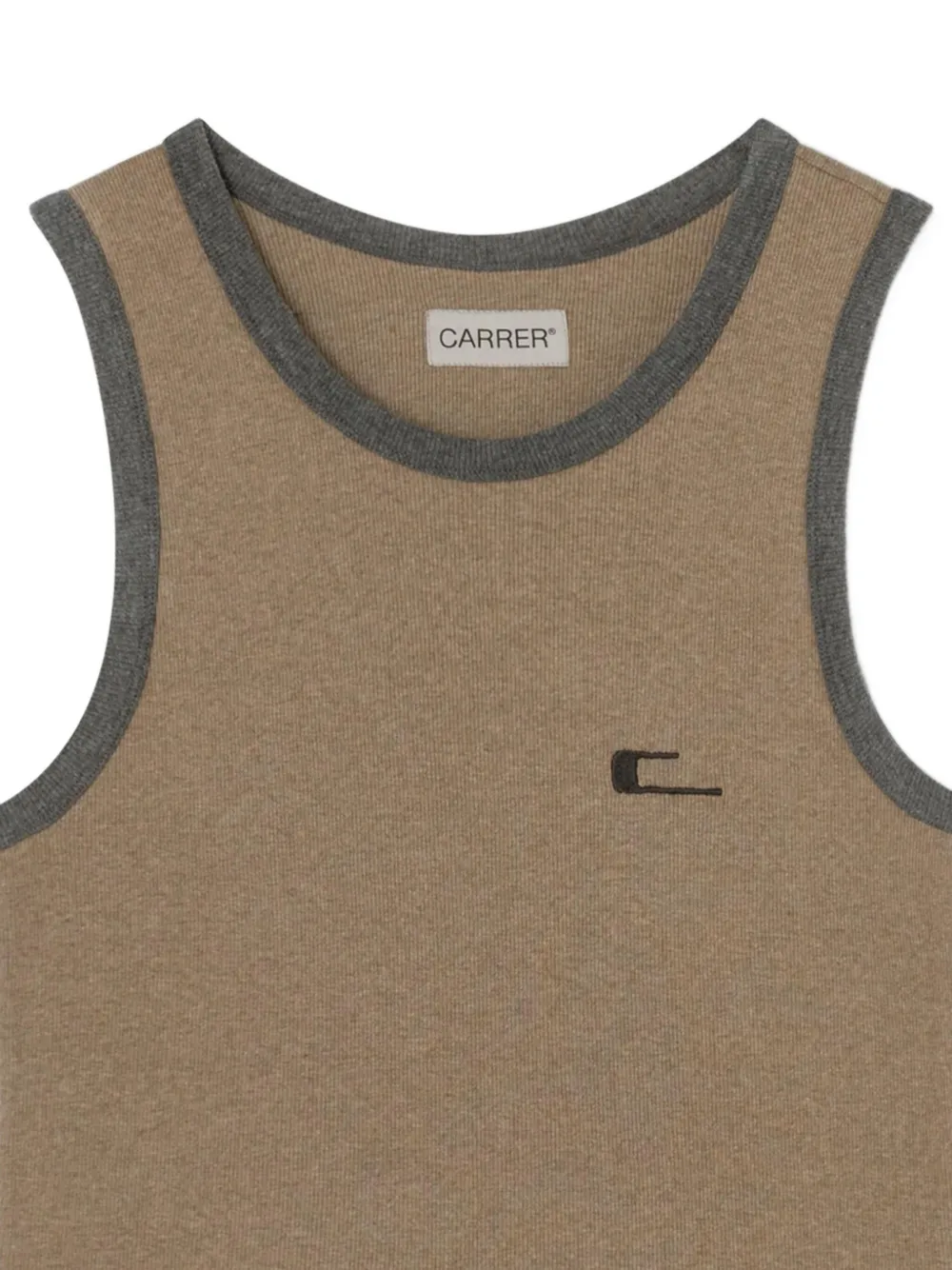 Бежевый с отделкой на вырезе, без рукавов, с логотипом