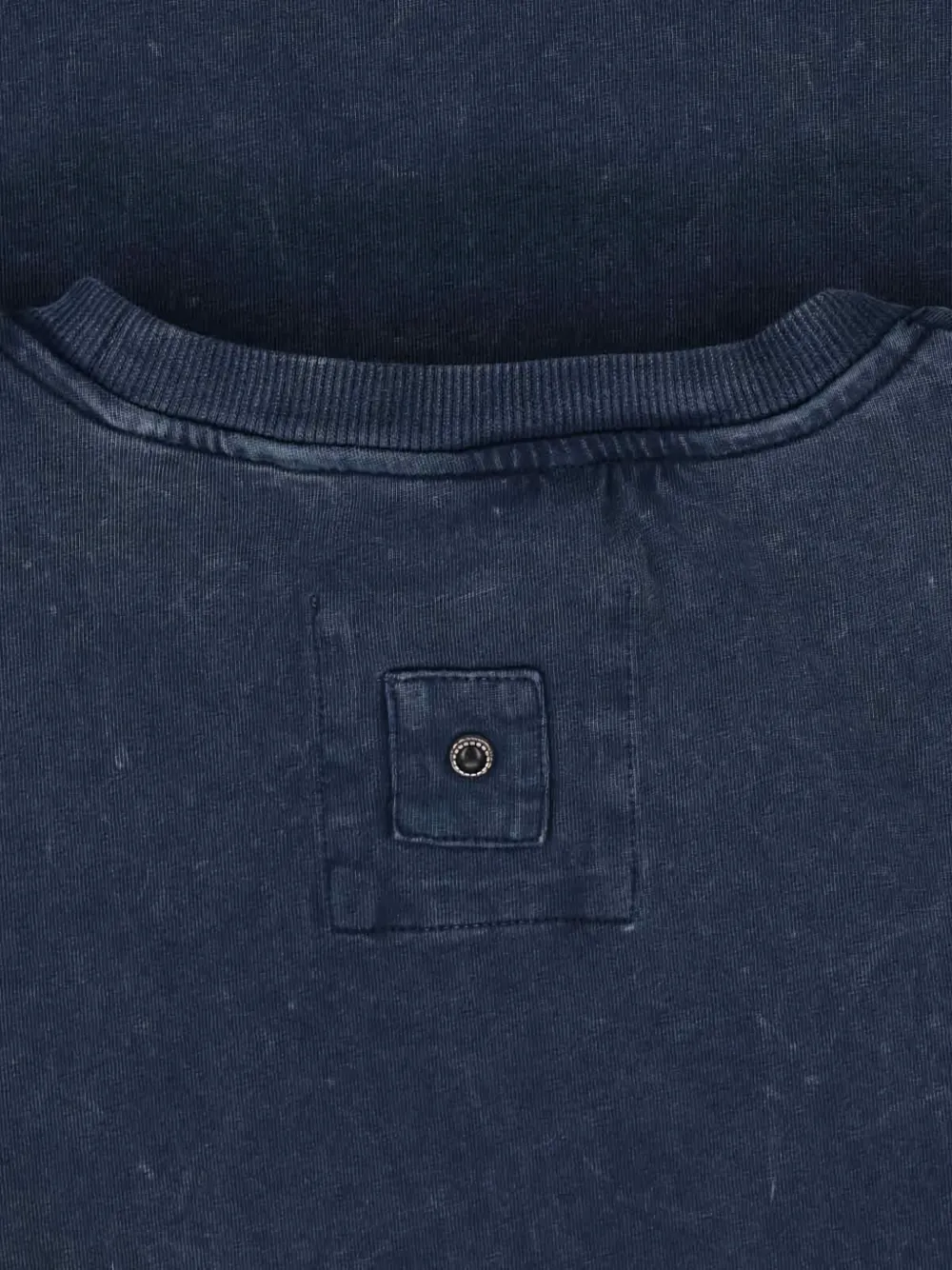 Синий круглый вырез, нашивка на спине