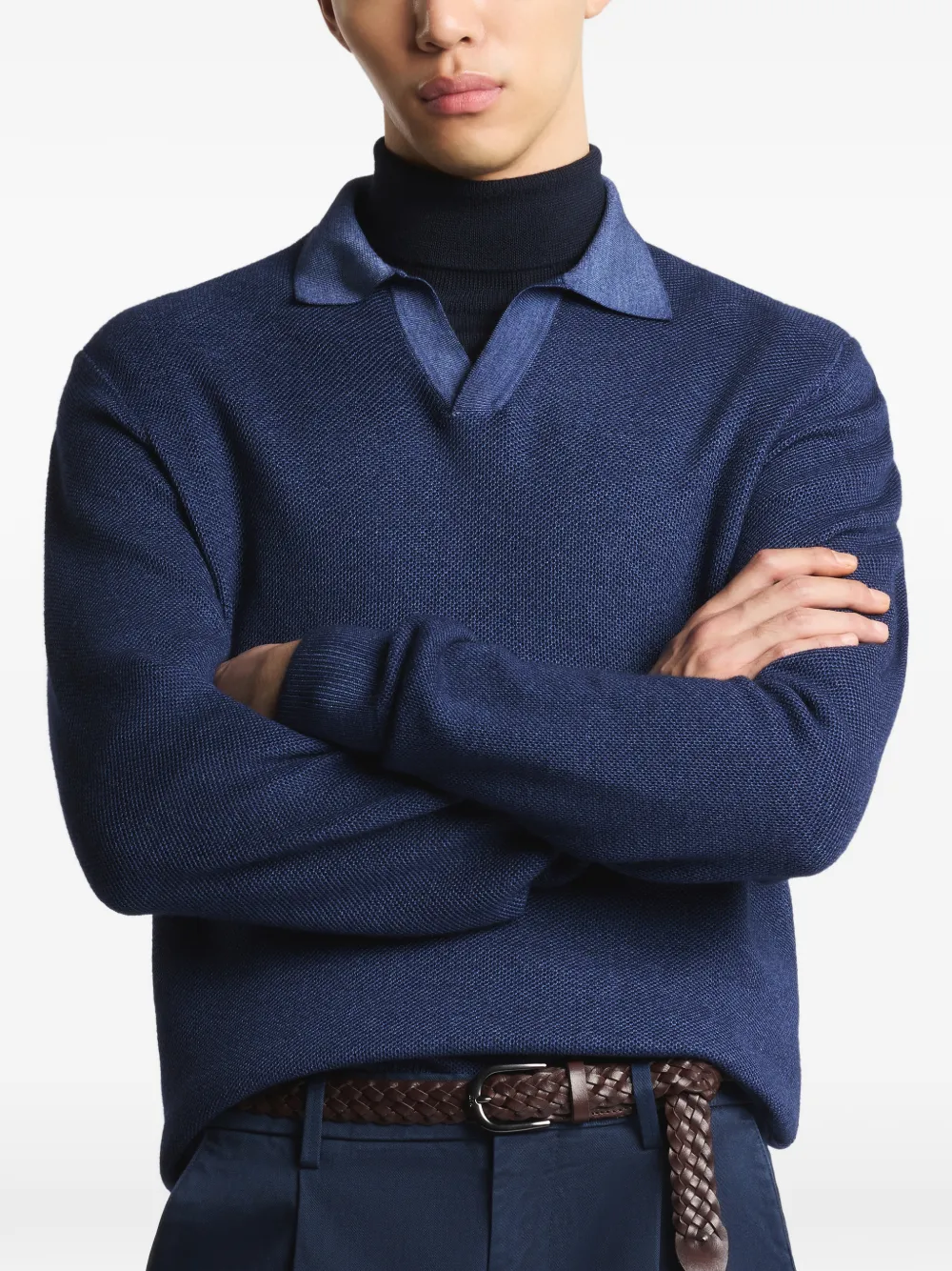 Поло с вязкой «соты» Fay, синий