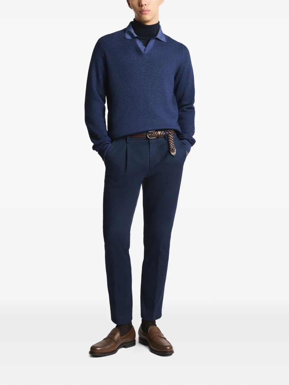 Поло с вязкой «соты» Fay, синий 42 838₽