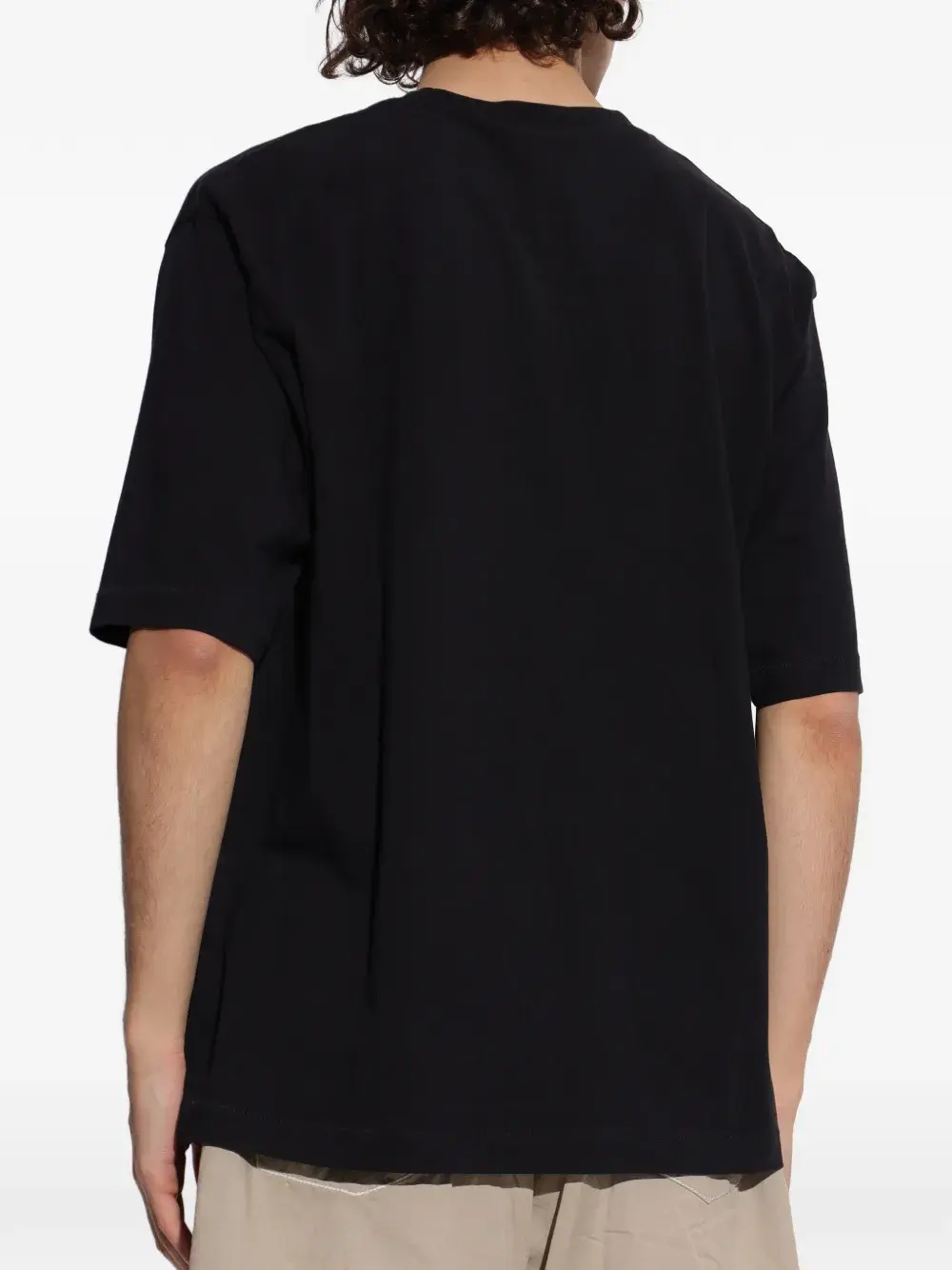Черная футболка с вышивкой, круглый вырез, короткие рукава