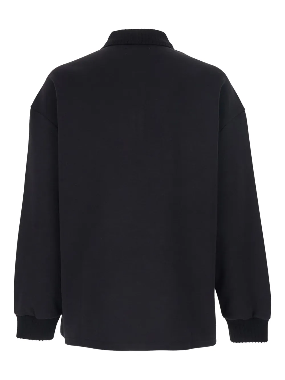 Чёрный цвет, рубчатые детали, логотип, воротник поло, застёжка на пуговицы, длинные рукава