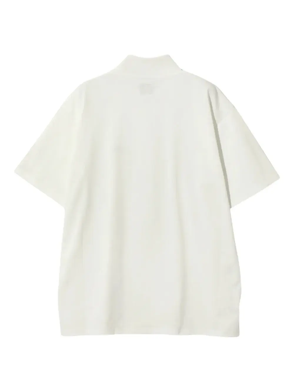 Белая футболка с вышитым логотипом, короткими рукавами, высоким воротом и прямым подолом
