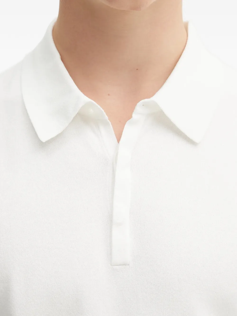 Белый вязанный топ с застежкой на пуговицы, воротником поло и длинными рукавами