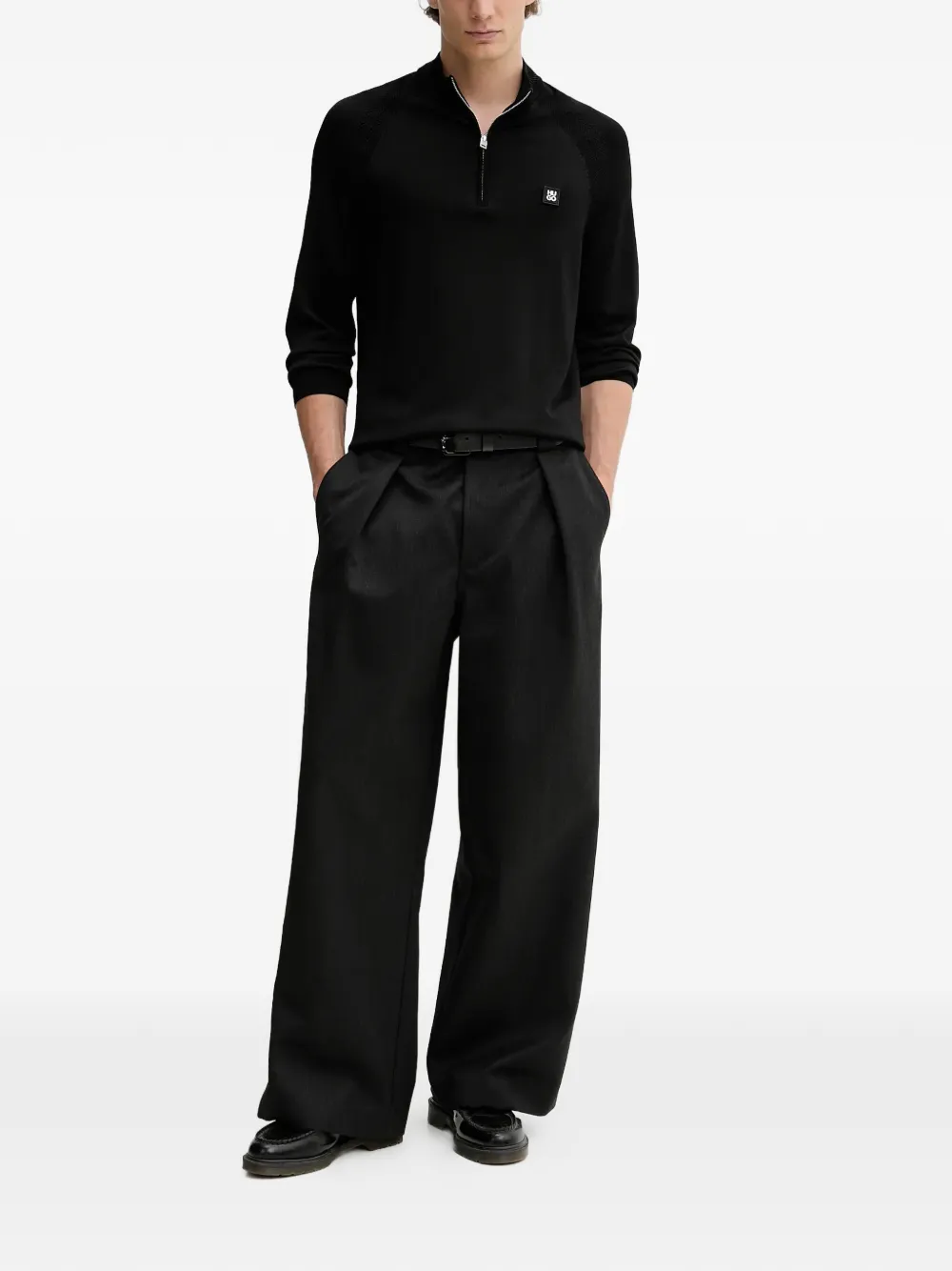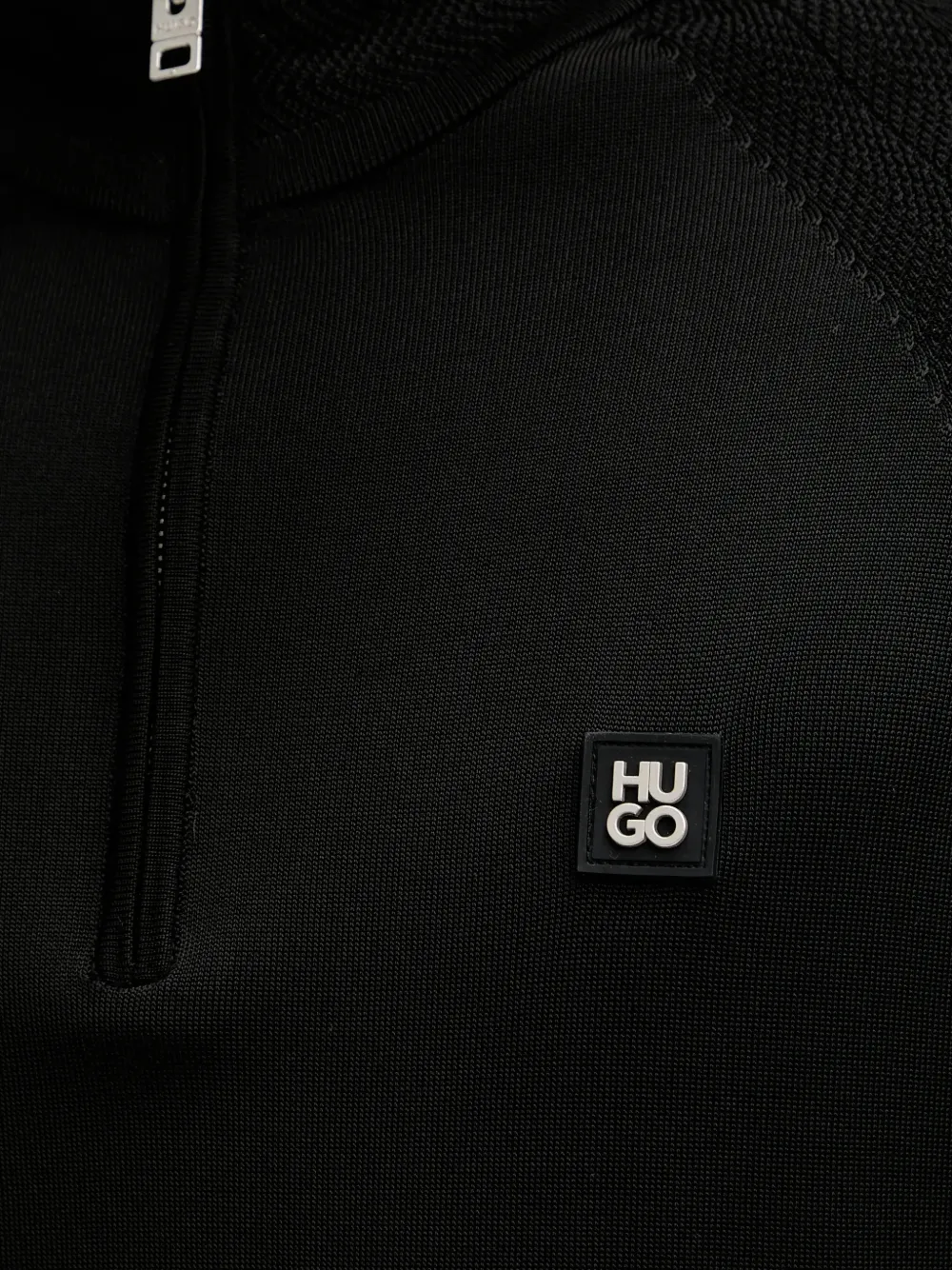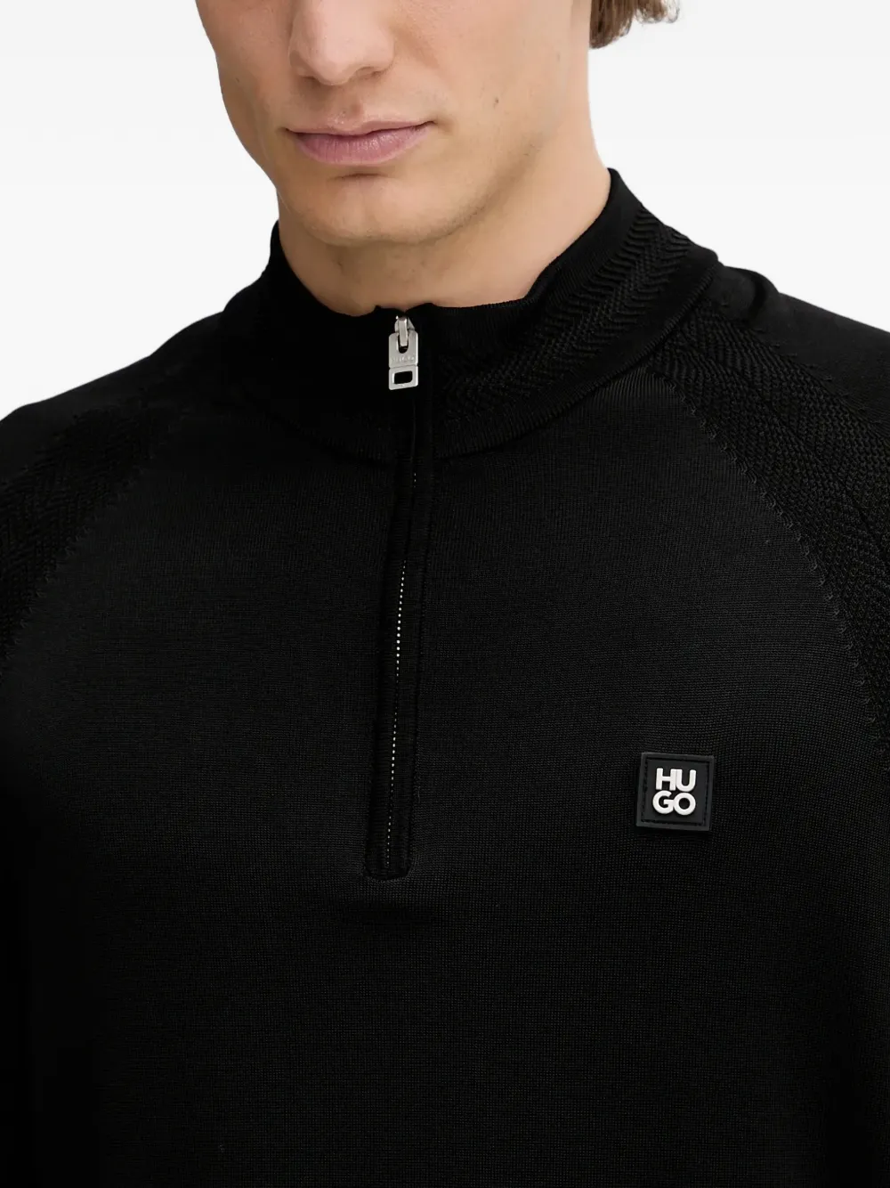 Черный свитер с четверной молнией, рукавами-реглан и нашивкой с логотипом, вязаный