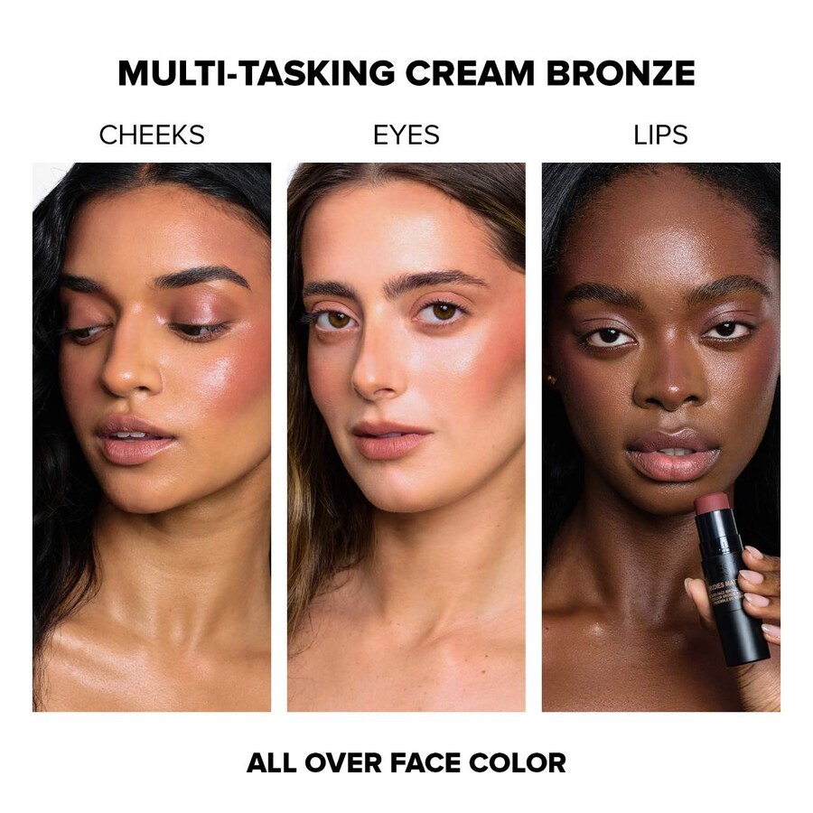 Что это:Многофункциональный матовый кремовый бронзер в стике, создающий теплый бронзовый оттенок на лице, глазах и губах для легкого макияжа.