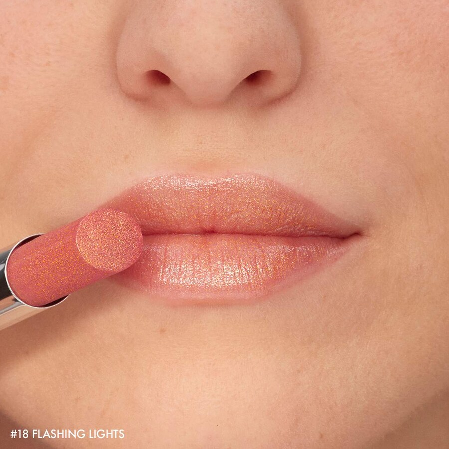 18 Flashing Lights INGREDIENTS : Bis-Diglyceryl Polyacyladipate-2, Octyldodecanol, Methyl Hydrogenated Rosinate, Hydrogenated Polydecene, Hydrogenated Styrene/Methyl Styrene/Indene Copolymer, Polybutene, Ricinus Communis (Castor) Seed Oil, C12-15 Alkyl Benzoate, Cera Microcristallina (Microcrystalline Wax), Synthetic Wax, Zea Mays (Corn) Starch, Ethylene/Propylene Copolymer, Calcium Aluminum Borosilicate, Calcium Sodium Borosilicate, Butyrospermum Parkii Butter (Butyrospermum Parkii (Shea Butter)), Limnanthes Alba (Meadowfoam) Seed Oil, Synthetic Fluorphlogopite, CI 77891 (Titanium Dioxide), Stearalkonium Hectorite, Alumina, Parfum (Fragrance), Propylene Carbonate, CI 77491 (Iron Oxides), Mangifera Indica (Mango) Seed Butter, Helianthus Annuus (Sunflower) Seed Oil, Ammonium Glycyrrhizate, Tin Oxide, Pentaerythrityl Tetra-Di-T-Butyl Hydroxyhydrocinnamate, Glyceryl Stearate Citrate, CI 15850 (Red 7), CI 19140 (Yellow 5 Lake), Tocopherol, Ascorbyl Tetraisopalmitate, Squalene, Beta-Sitosterol.