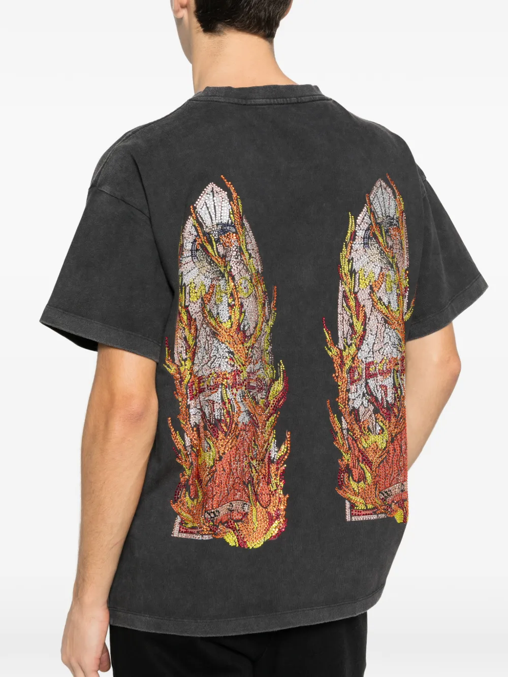 Футболка с принтом "пламя", украшением из страз, круглым вырезом и короткими рукавами